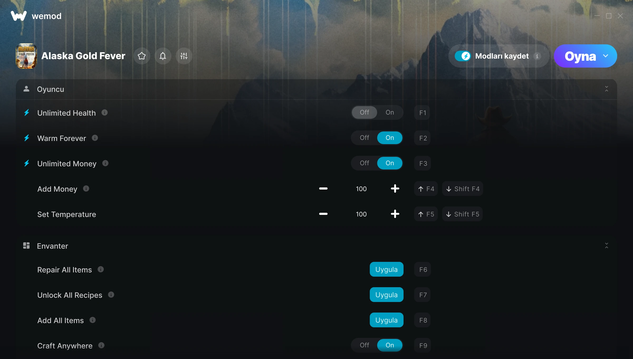 85MB Windows ...veya uygulamayı indirmek için bizi bilgisayarından ziyaret et Unlimited Health Edinin, Warm Forever & 26 diğer mod for Alaska Gold Fever with WeMod
