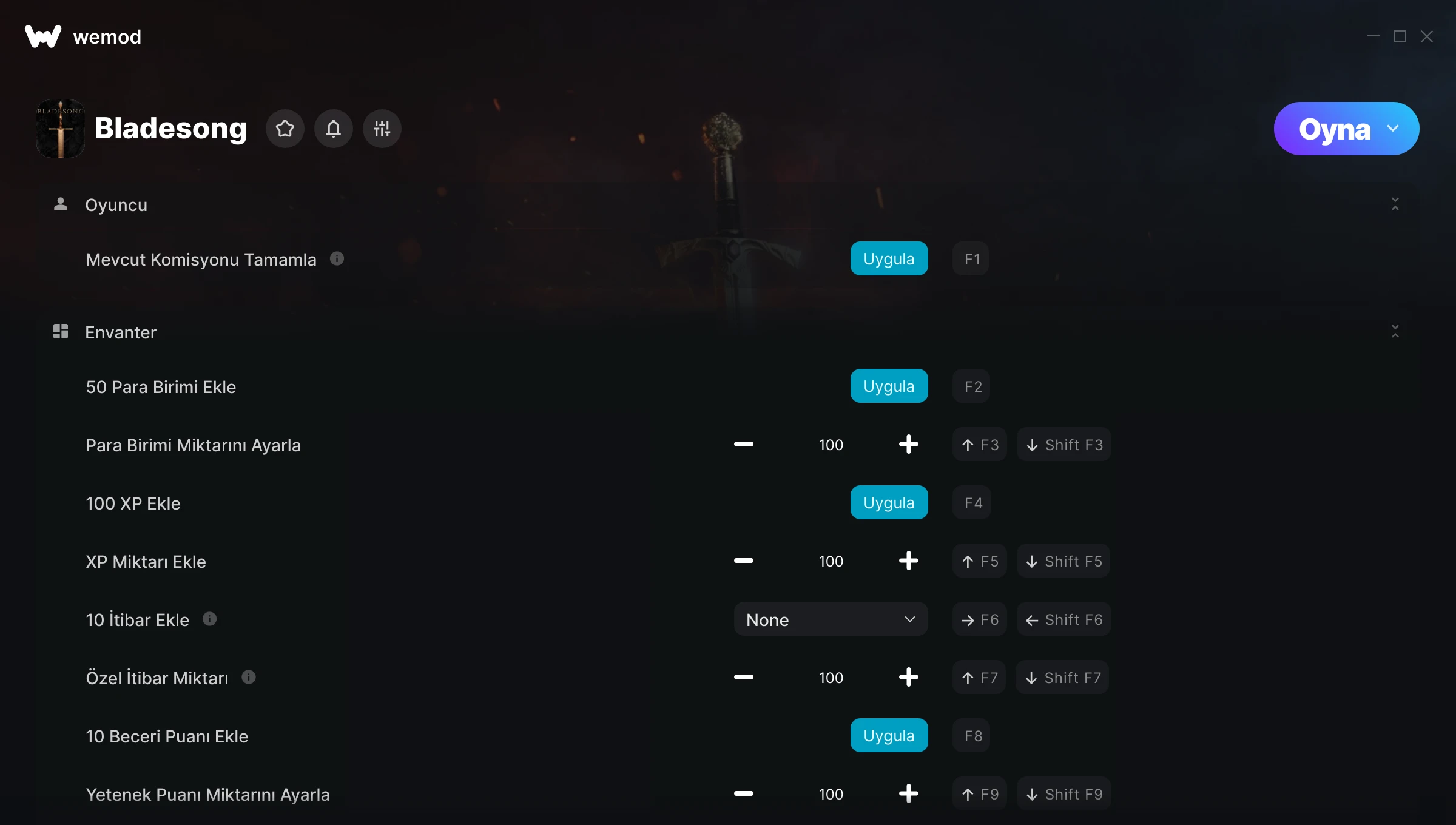 85MB Windows ...veya uygulamayı indirmek için bizi bilgisayarından ziyaret et Mevcut Komisyonu Tamamla Edinin, 50 Para Birimi Ekle & 32 diğer mod for Bladesong with WeMod