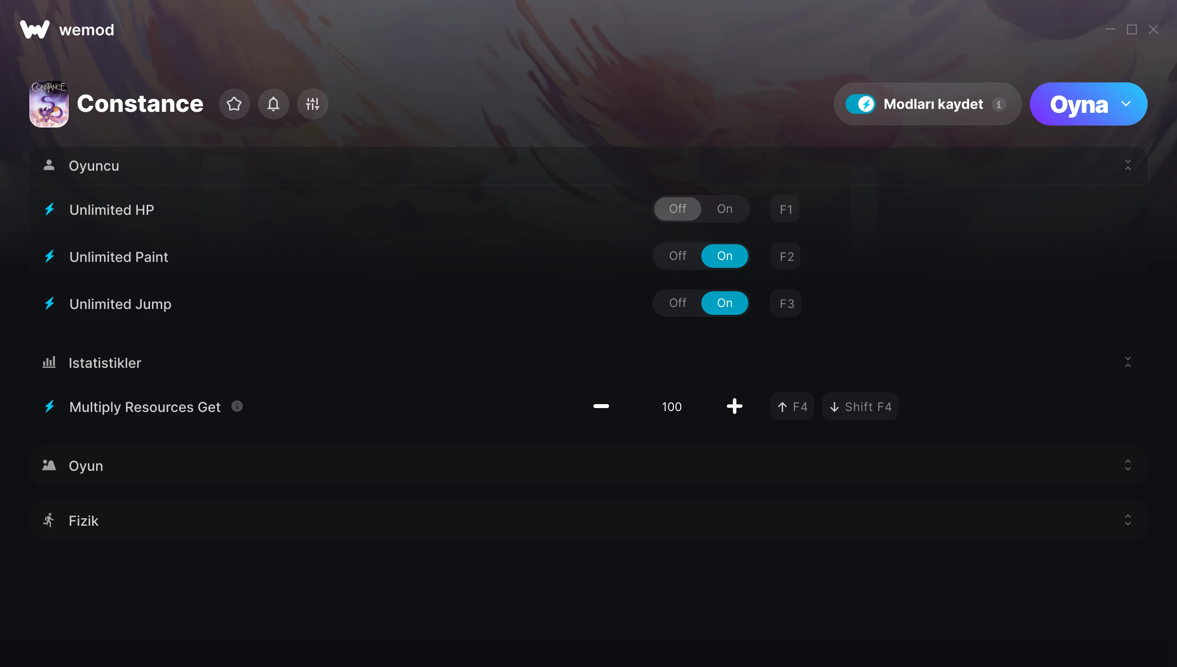 Açık Kapalı Sınırsız Sağlık Sınırsız Dayanıklılık Modları Değiştir