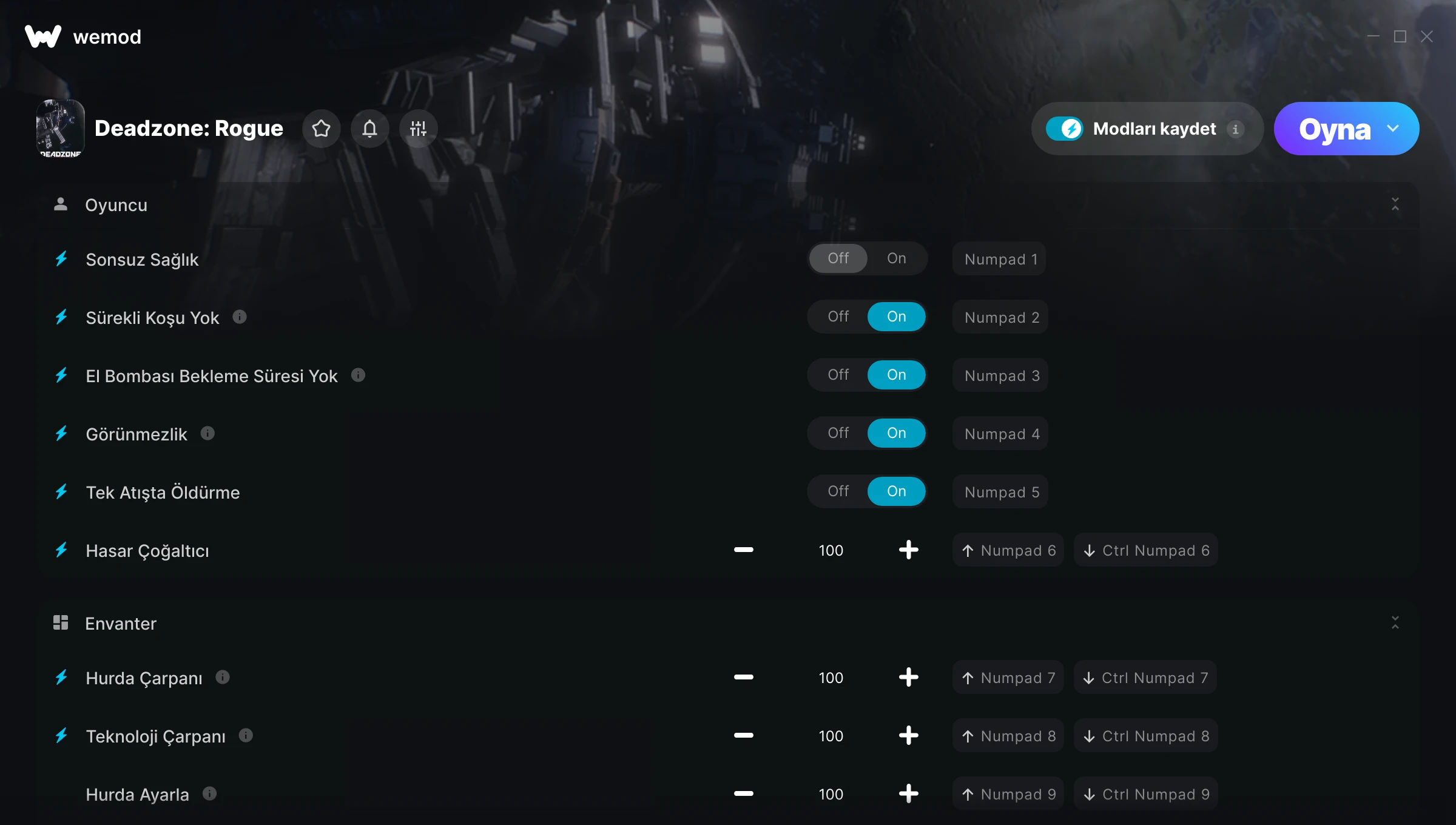 Hileleri Deadzone: Rogue oyununda nasıl kullanırım?