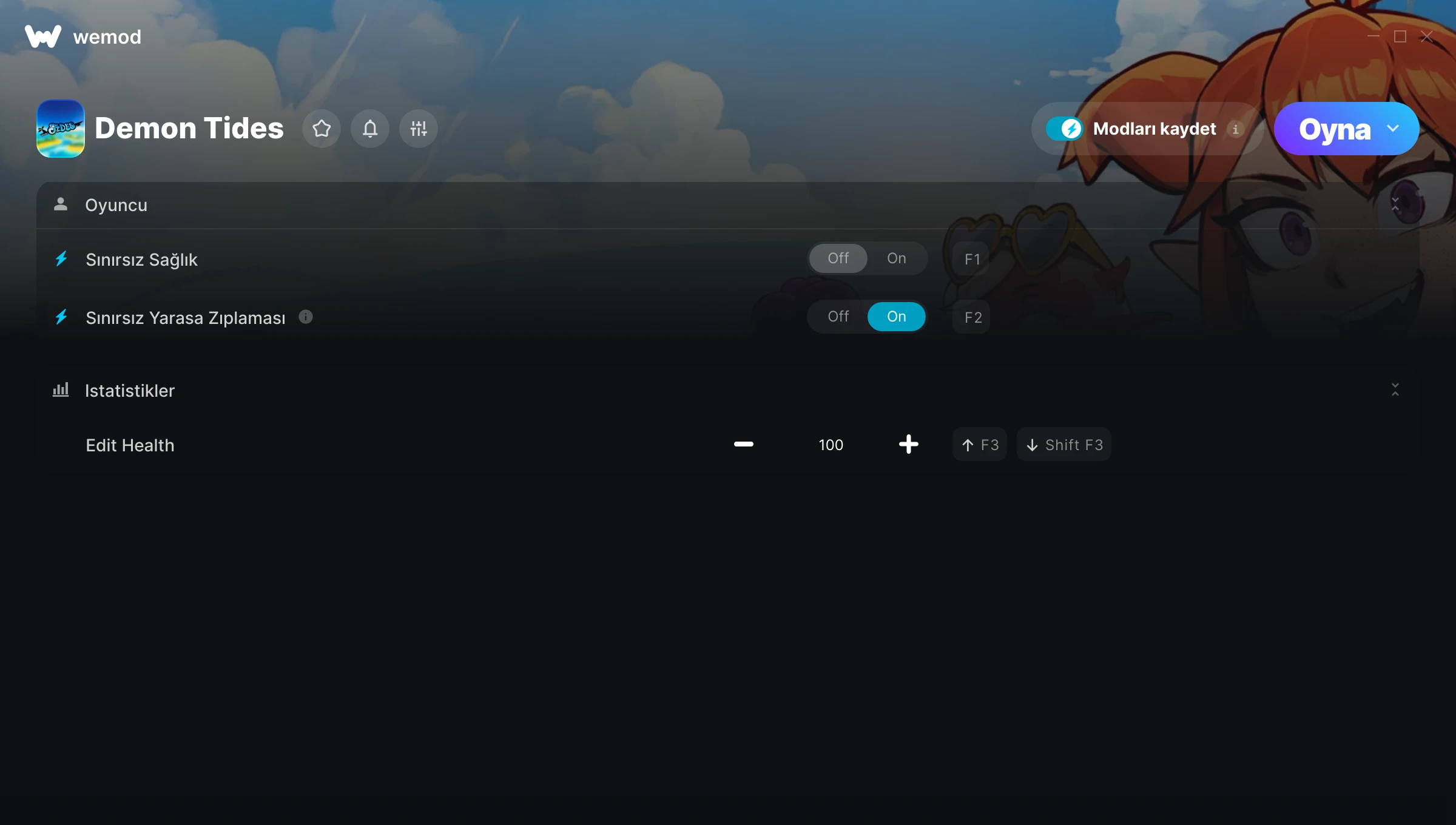 85MB Windows ...veya uygulamayı indirmek için bizi bilgisayarından ziyaret et Sınırsız Sağlık Edinin, Sınırsız Yarasa Zıplaması & 1 diğer mod for Demon Tides with WeMod