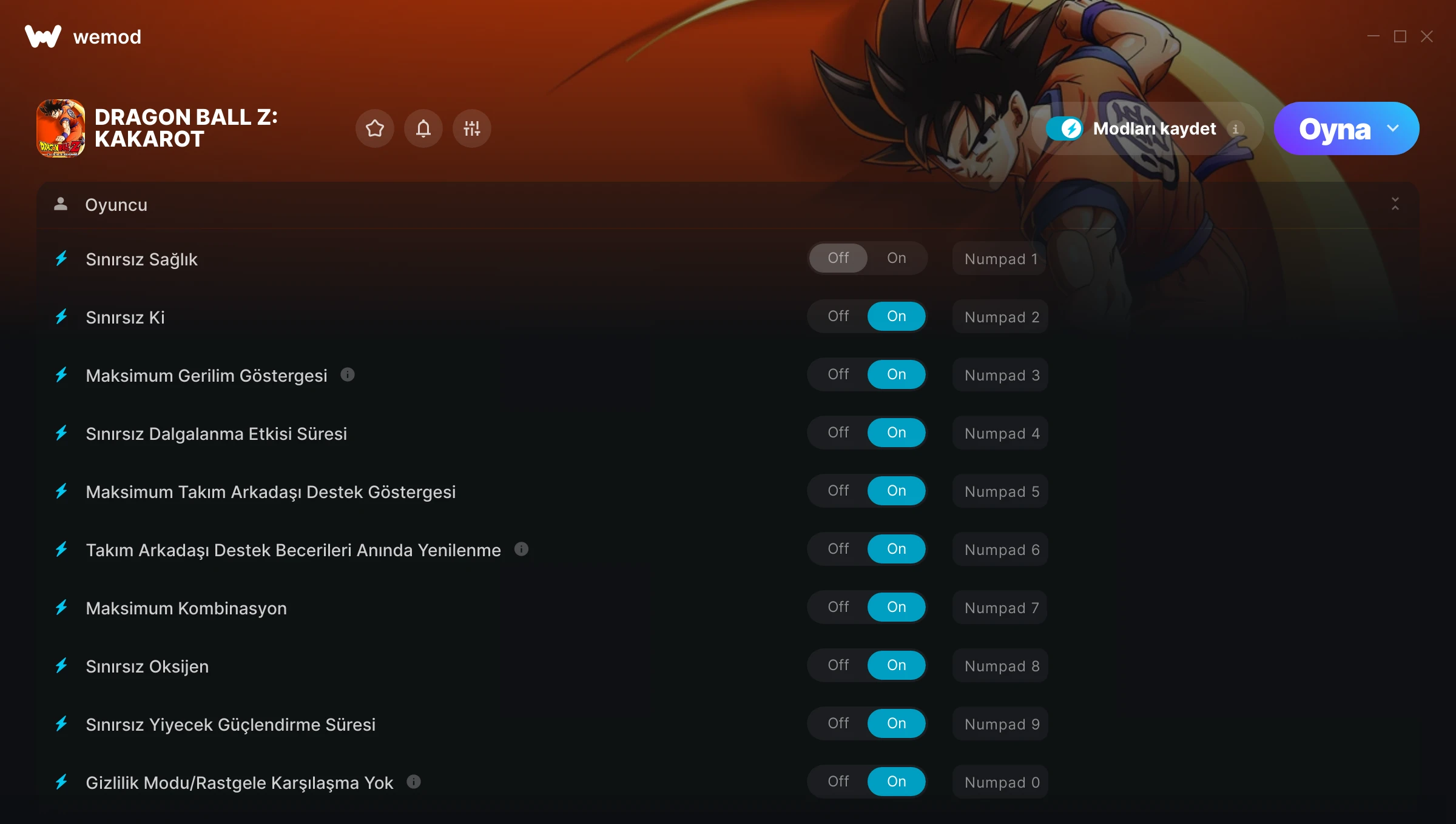 Made the game much more fun to play, couldn't grind it out to the max potential of finding every z orb for upgrading so it saves me enough time due to my limitations of playing! Thank you very much WeMod and the Developers of this mod. I'm very happy to have found you guys.
