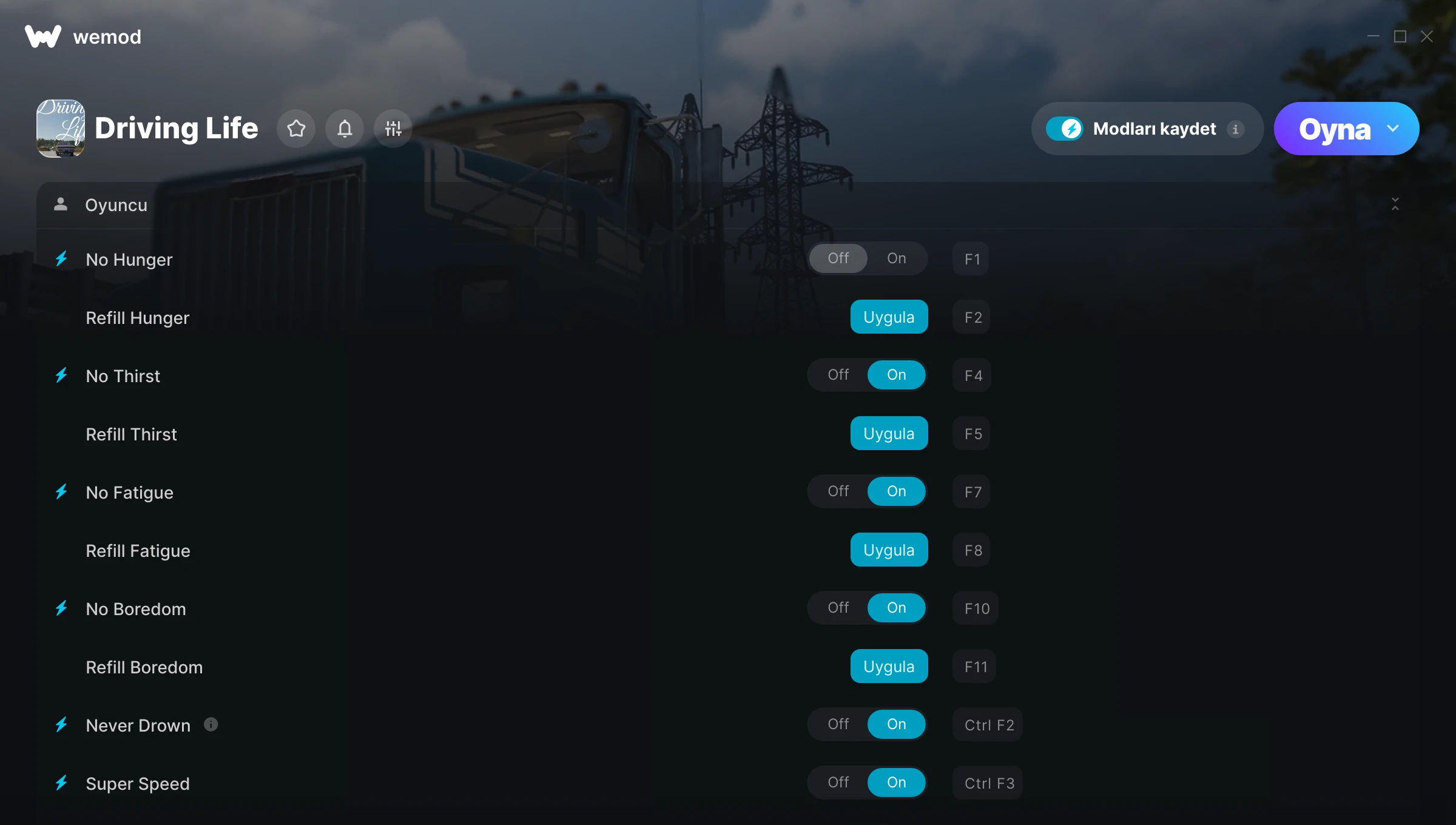 85MB Windows ...veya uygulamayı indirmek için bizi bilgisayarından ziyaret et No Hunger Edinin, Refill Hunger & 27 diğer mod for Driving Life with WeMod