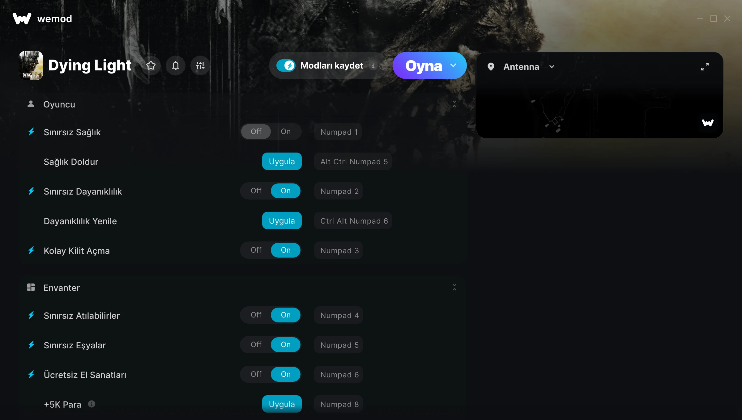 I love using we mod whilst I play Dying light I was playing Dying light and I was on level 30 it was so hard for me but ever since I started using we mod it made life so much easier. I know I am actually a girl playing Dying light when my brother let me play on it was quite fun we laughed I also screamed I was terrified on level 3 running away for them scary monsters. I love it and thankyou for making it !