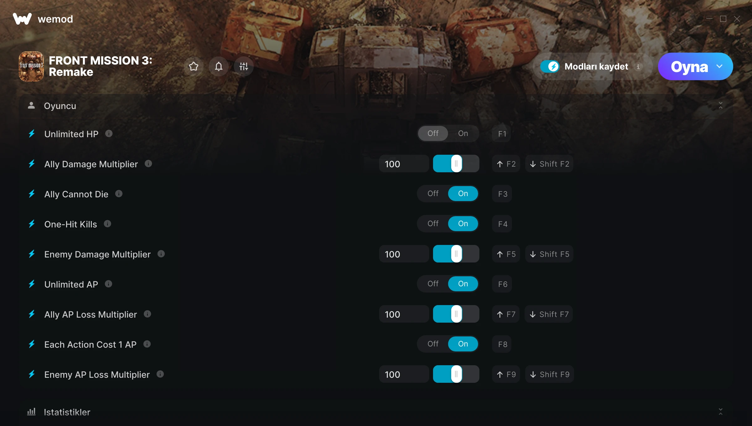 85MB Windows ...veya uygulamayı indirmek için bizi bilgisayarından ziyaret et Unlimited HP Edinin, Ally Damage Multiplier & 8 diğer mod for FRONT MISSION 3: Remake with WeMod