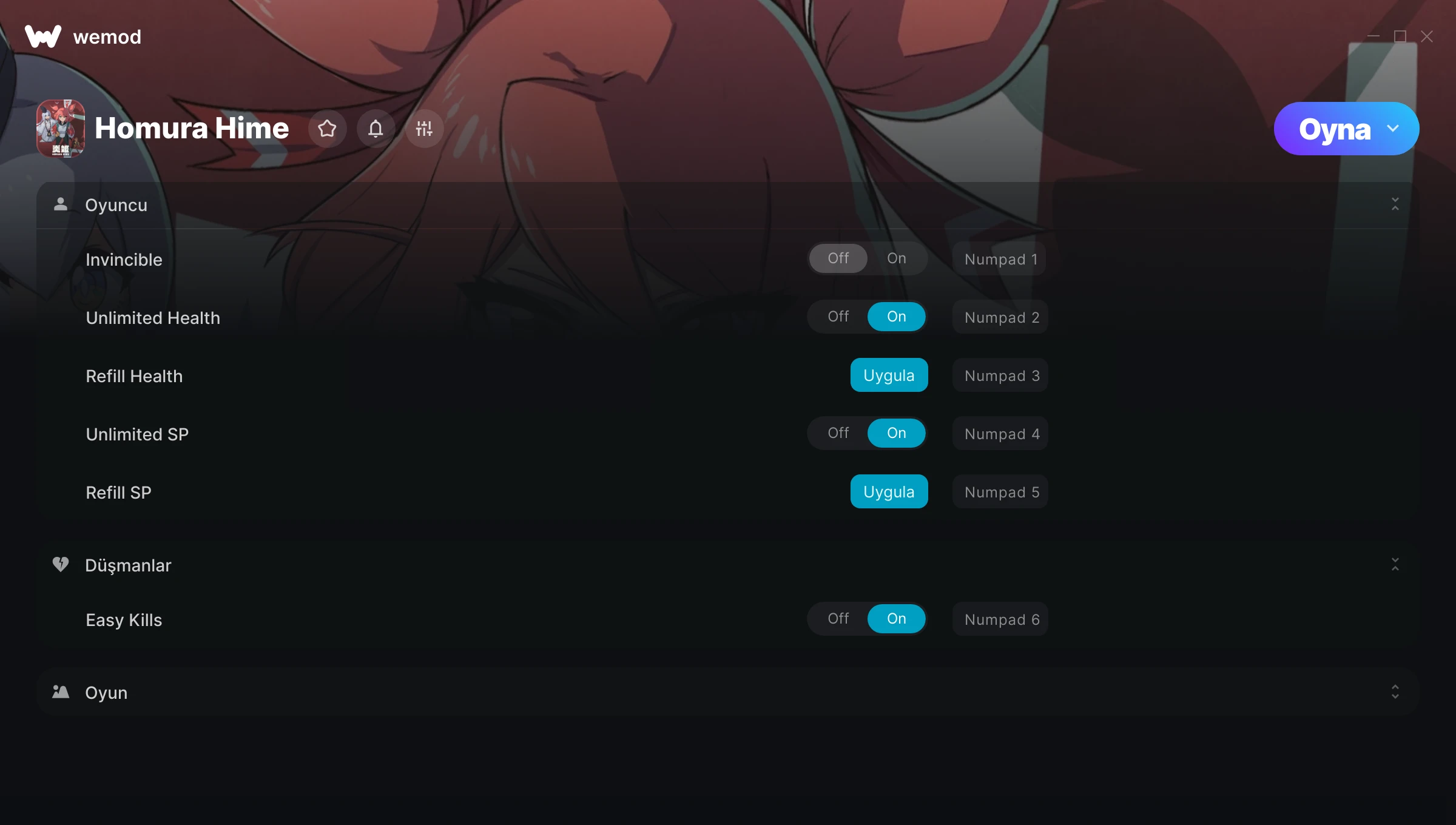 Hileleri Homura Hime oyununda nasıl kullanırım?