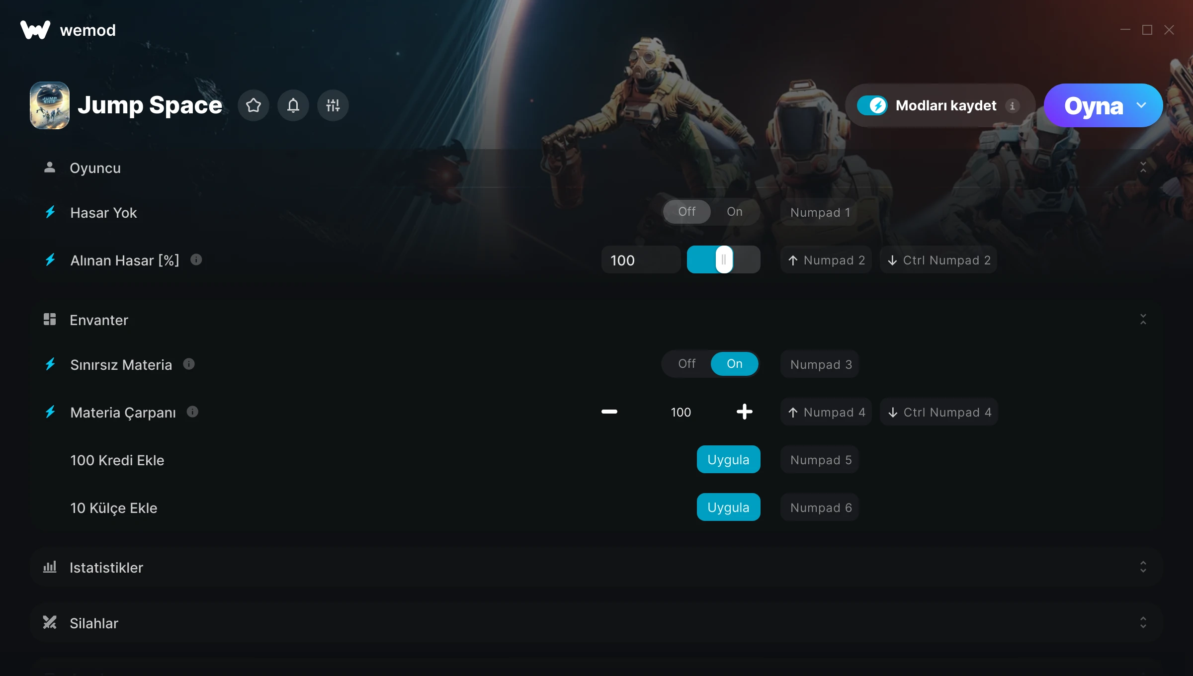 Hileleri Jump Space oyununda nasıl kullanırım?