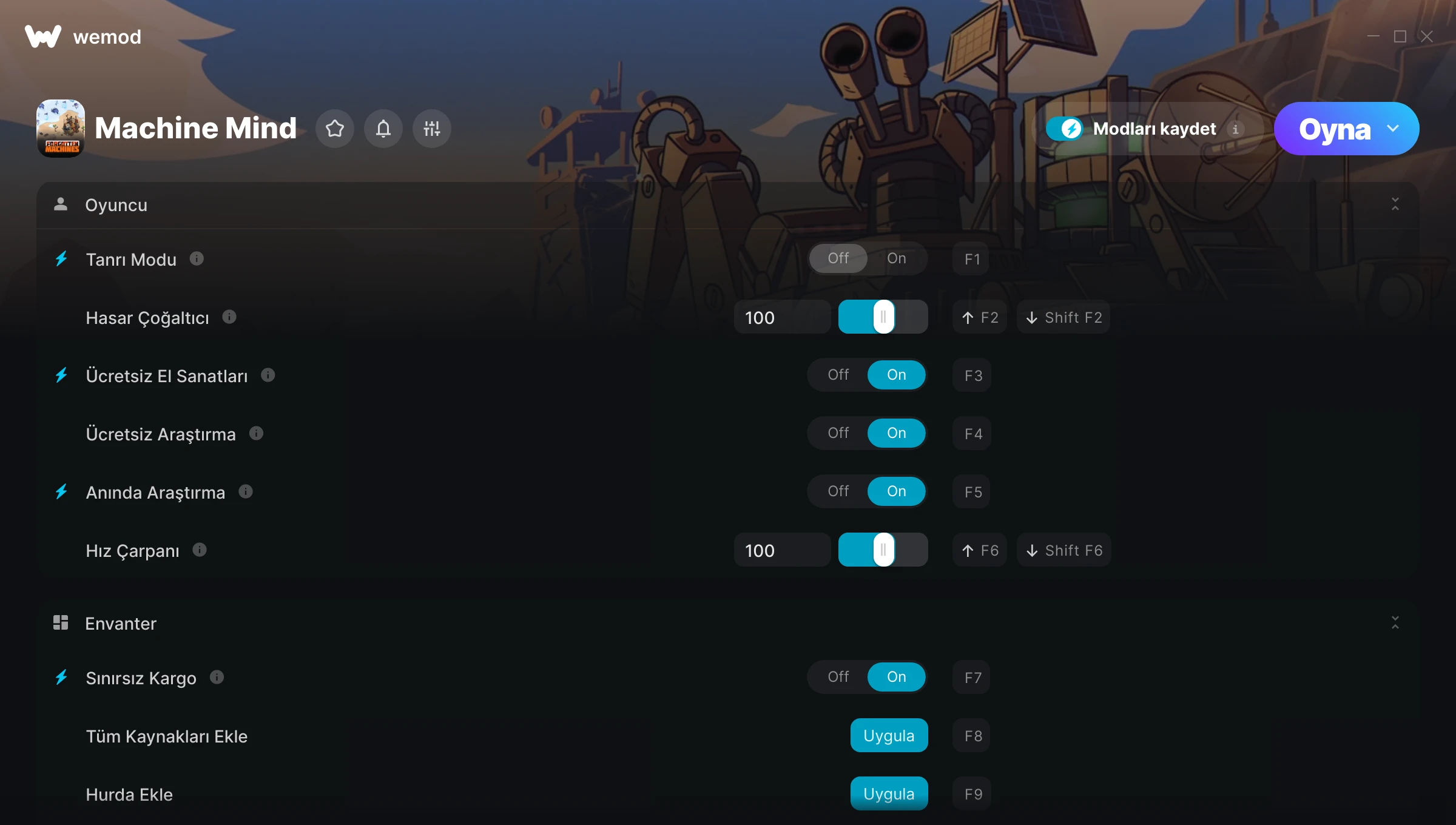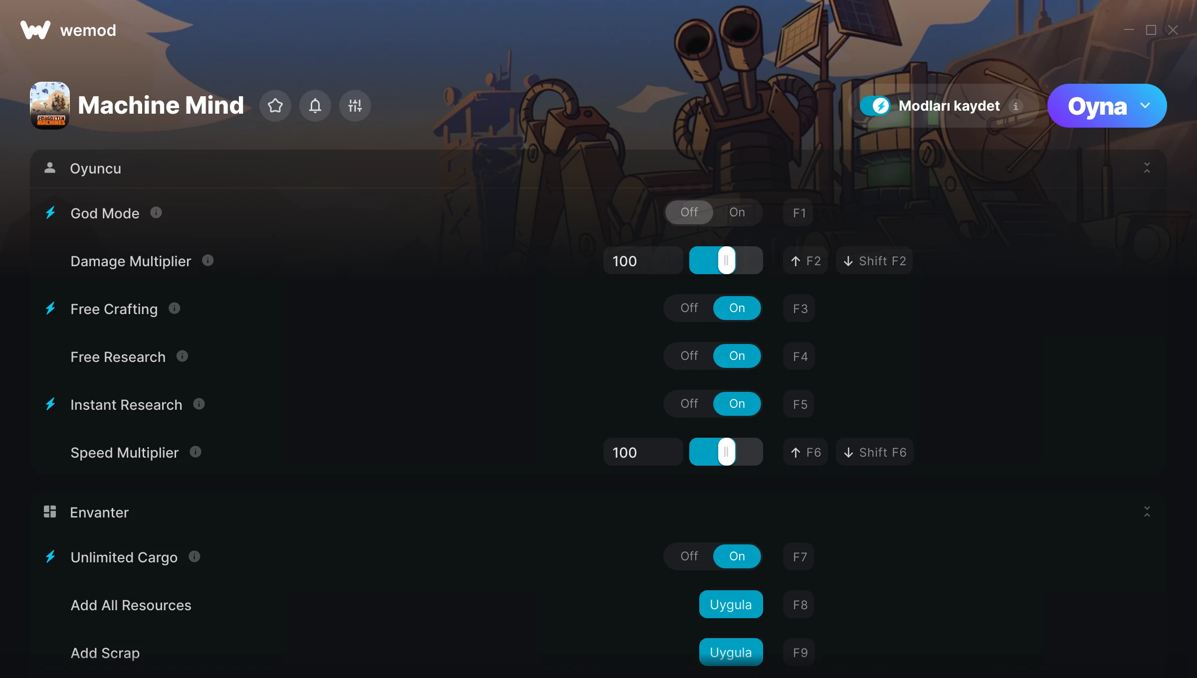 85MB Windows ...veya uygulamayı indirmek için bizi bilgisayarından ziyaret et Tanrı Modu Edinin, Hasar Çoğaltıcı & 29 diğer mod for Machine Mind with WeMod