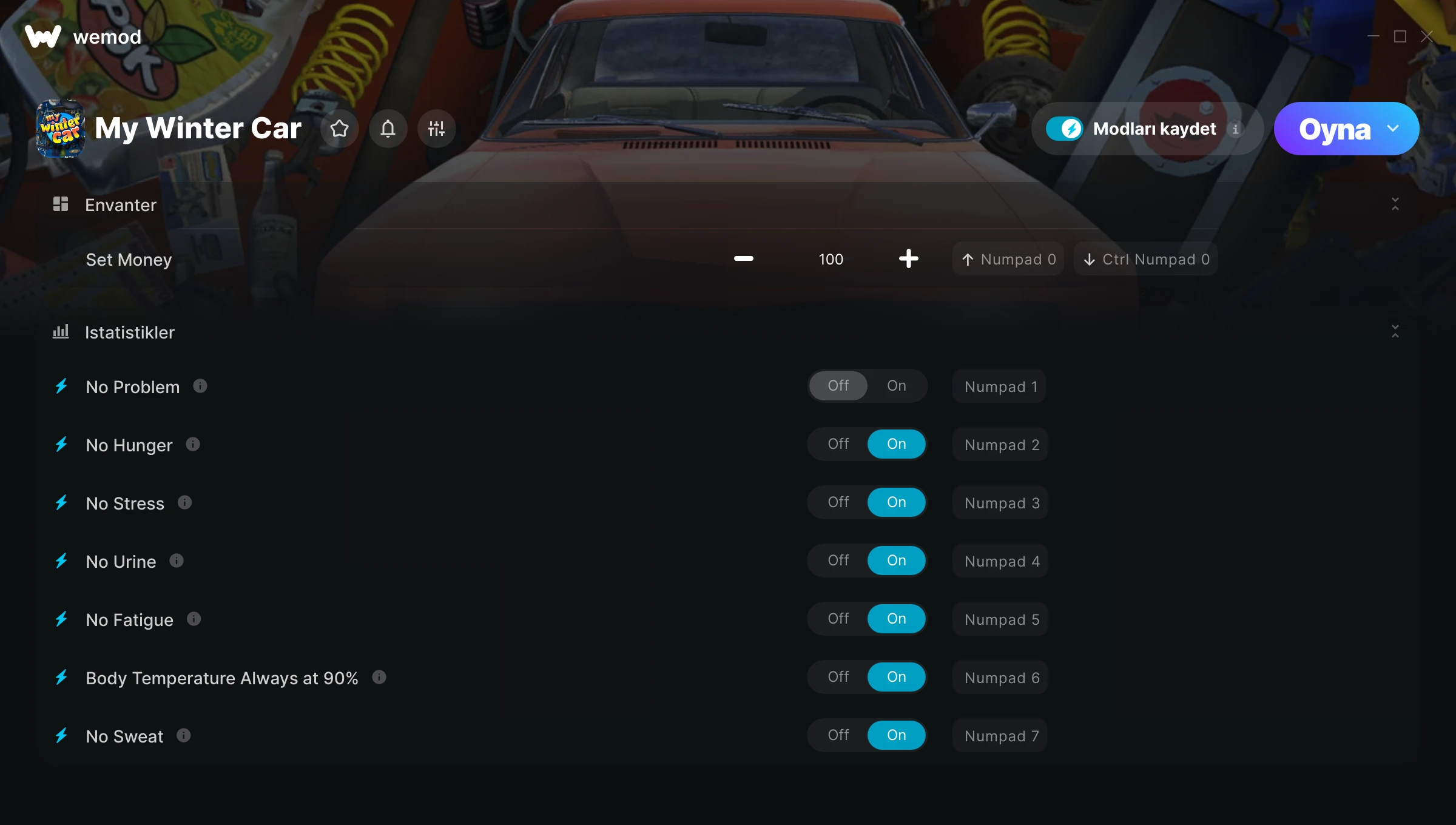 85MB Windows ...veya uygulamayı indirmek için bizi bilgisayarından ziyaret et Para Ayarlama Edinin, Sorun Yok & 6 diğer mod for My Winter Car with WeMod