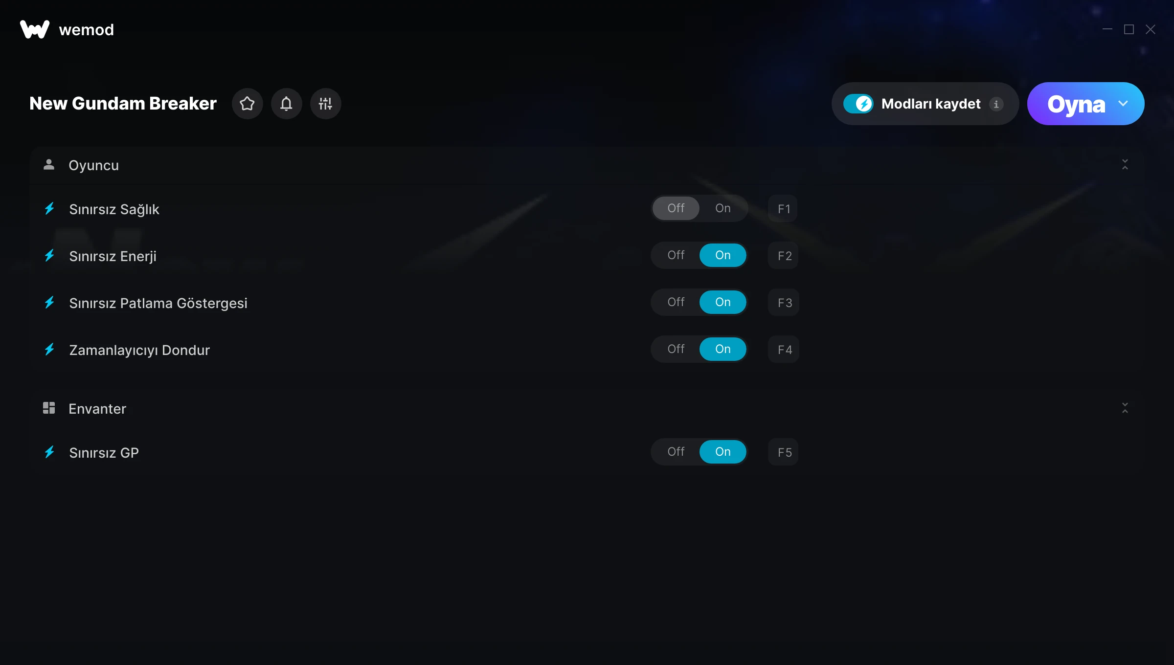 Açık Kapalı Sınırsız Sağlık Sınırsız Dayanıklılık Modları Değiştir