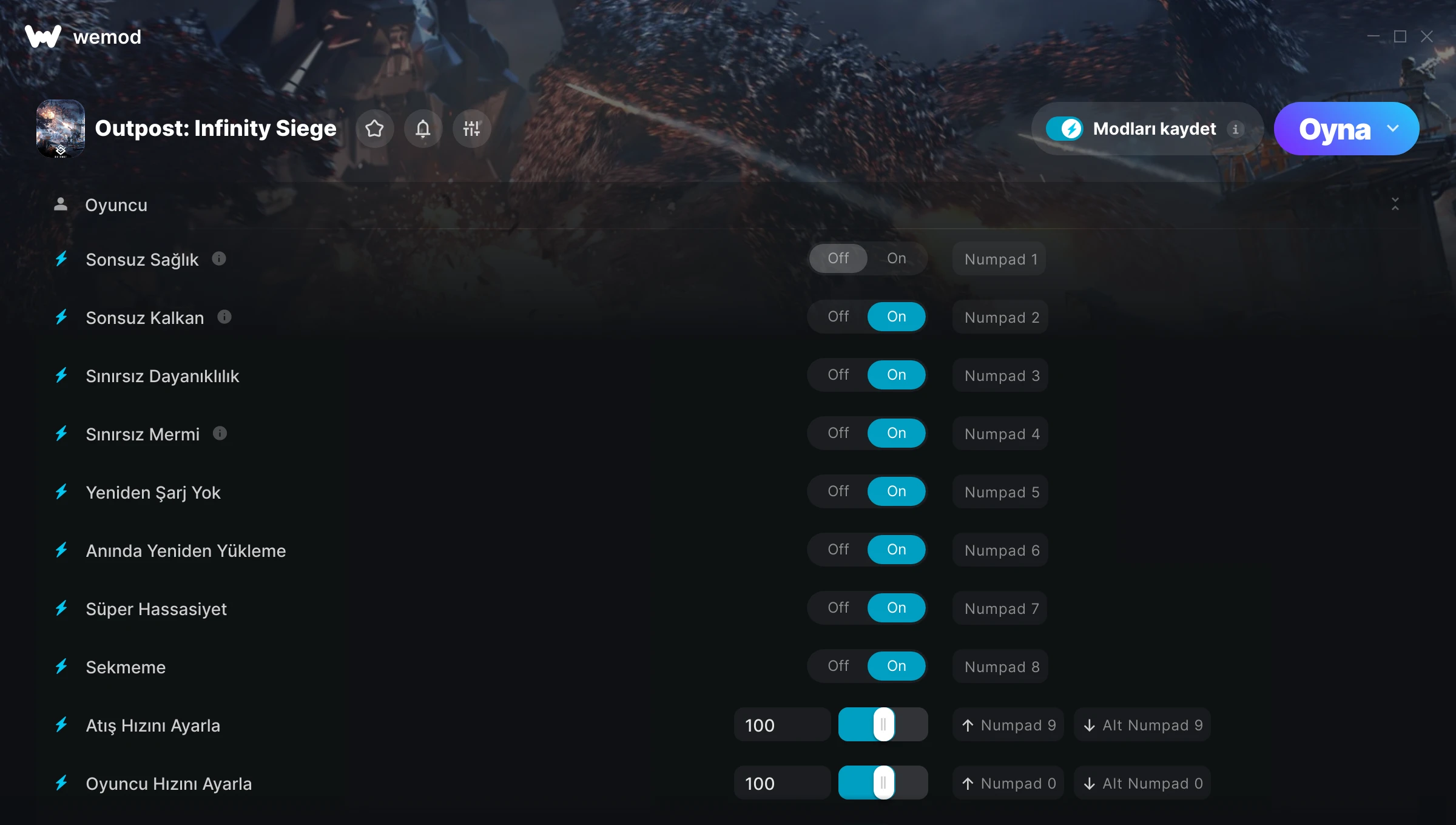 all the mods i used worked without incident. infinte health, shield, stamina, ammo, no reload, outpost output, instant kill.