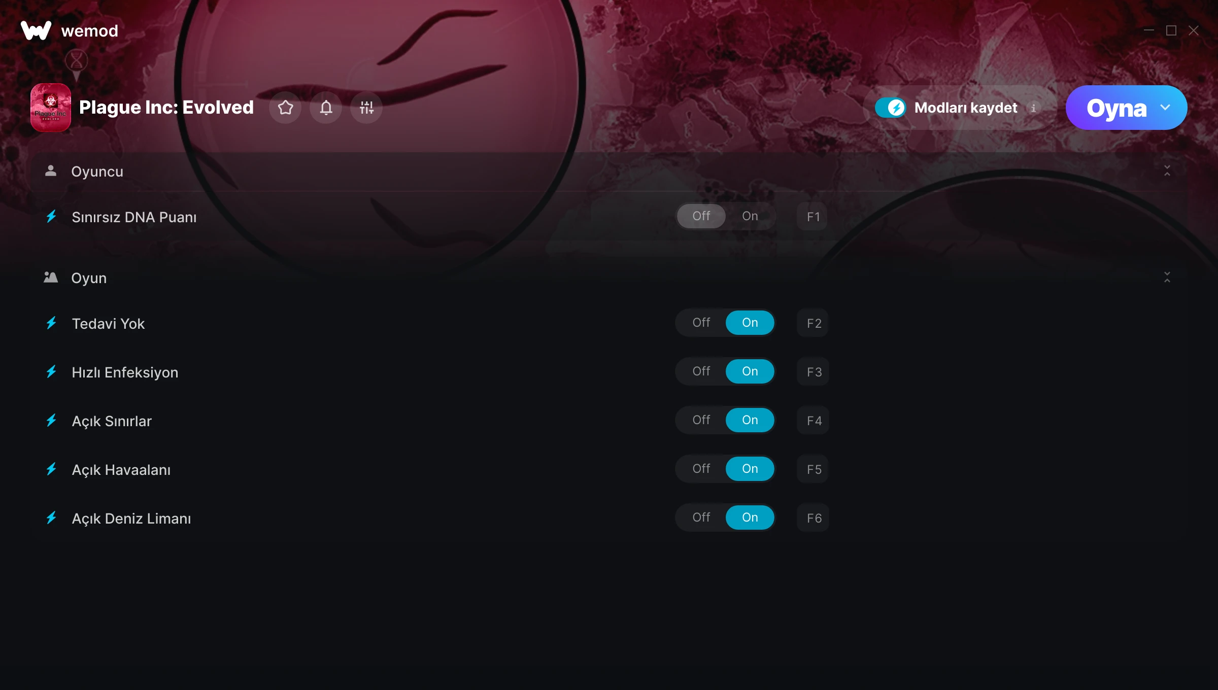 My game wouldn't allow me to use the Unlimited DNA Points, No Cure, or Fast Infection for some reason, but other than that it was a really good game play.