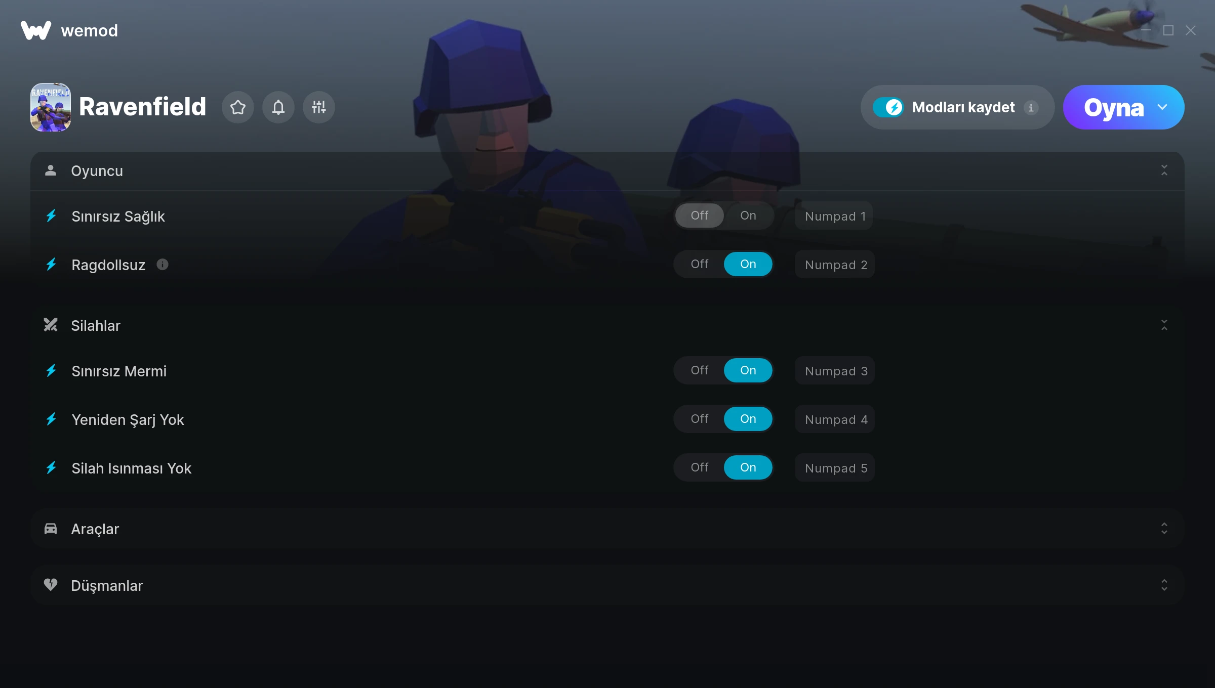 very nice! but unlimited health also work for bots and no ragdoll does not work and unlimited ammo, no reload didnt work.