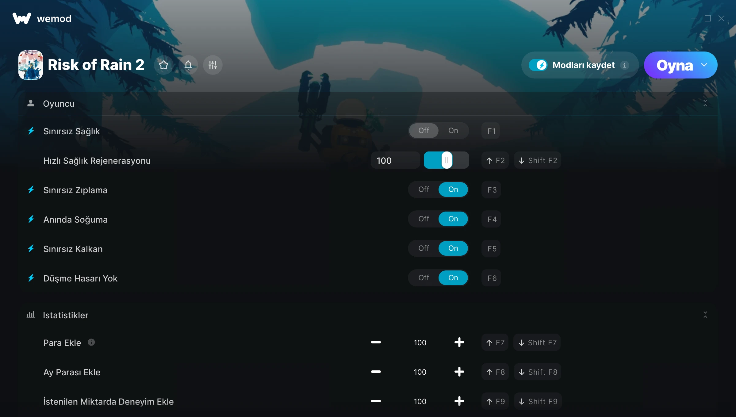 thank you WeMod & devs for allowing us the gamer to play how we want. had risk of rain 2 on the ps4 with a couple thousand hours into it after switching to PC this helped to unlock characters and items.