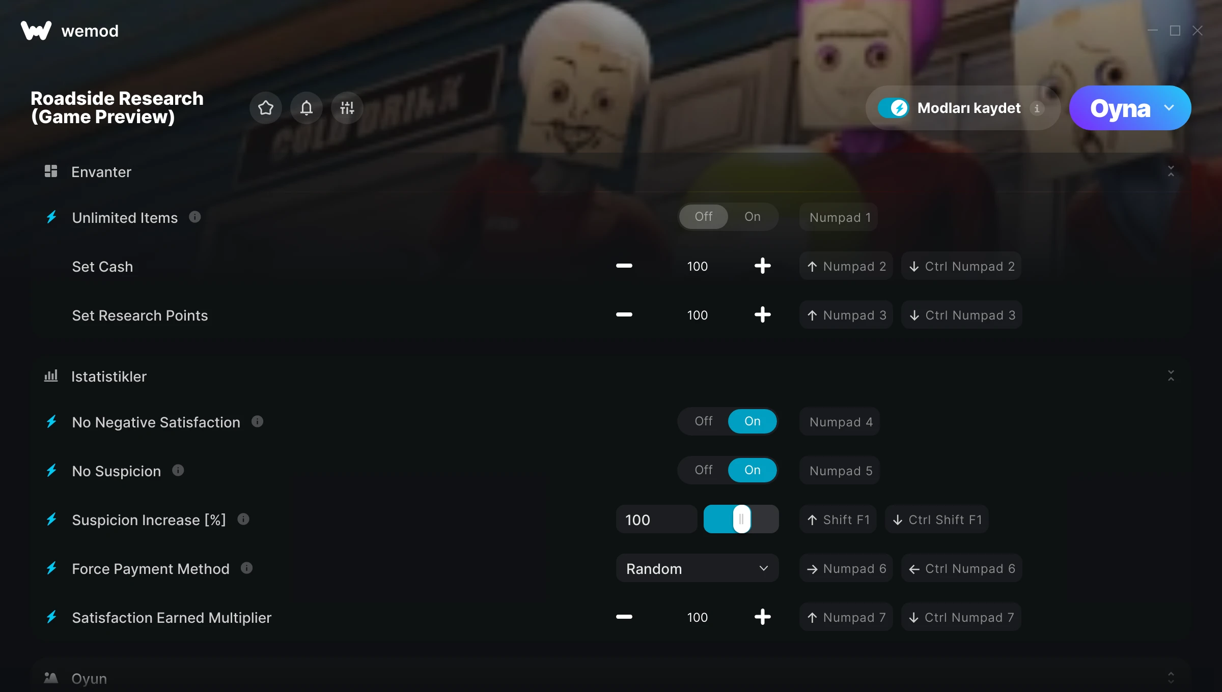 Hileleri Roadside Research (Game Preview) oyununda nasıl kullanırım?