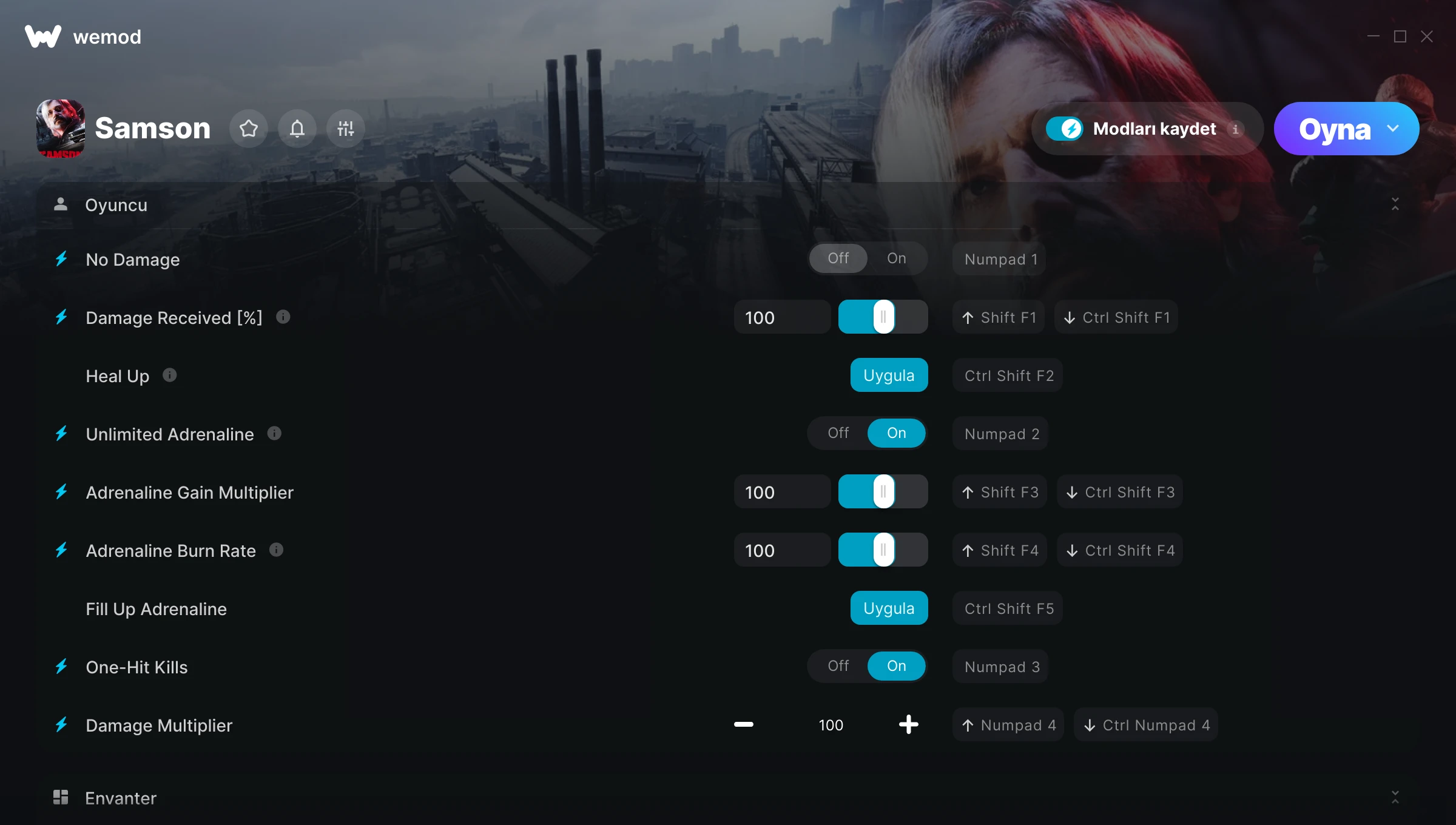 85MB Windows ...veya uygulamayı indirmek için bizi bilgisayarından ziyaret et No Damage Edinin, Damage Received [%] & 27 diğer mod for Samson with WeMod