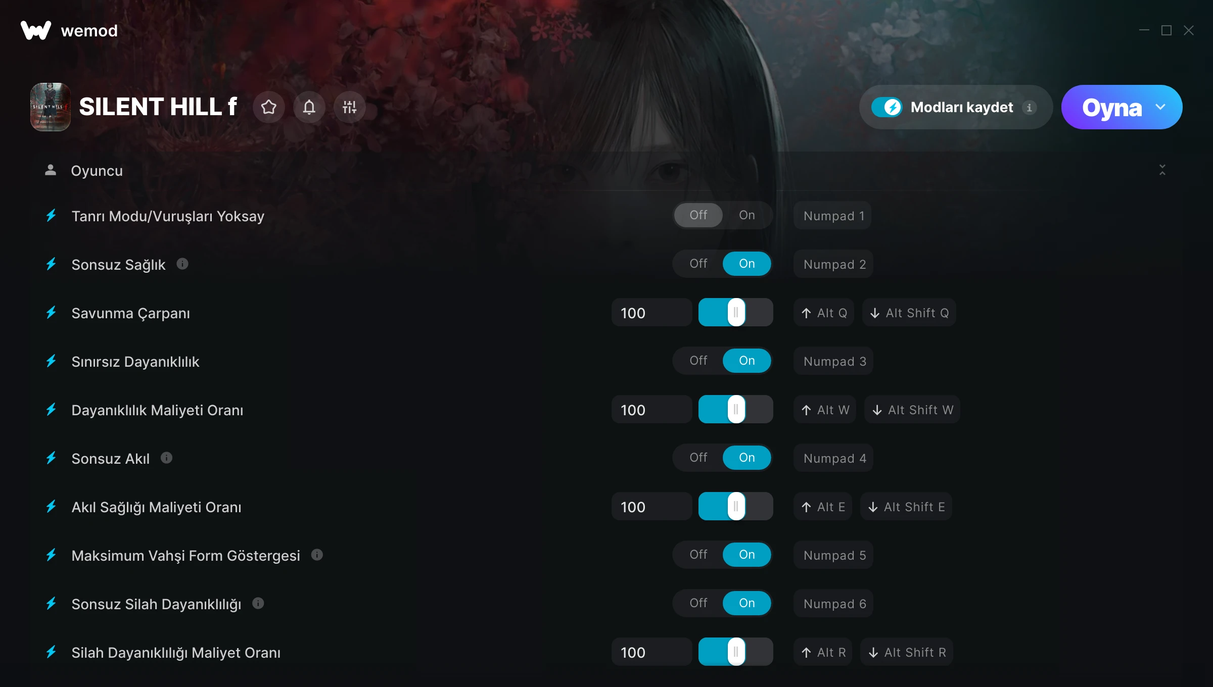 85MB Windows ...veya uygulamayı indirmek için bizi bilgisayarından ziyaret et Tanrı Modu/Vuruşları Yoksay Edinin, Sonsuz Sağlık & 24 diğer mod for SILENT HILL f with WeMod