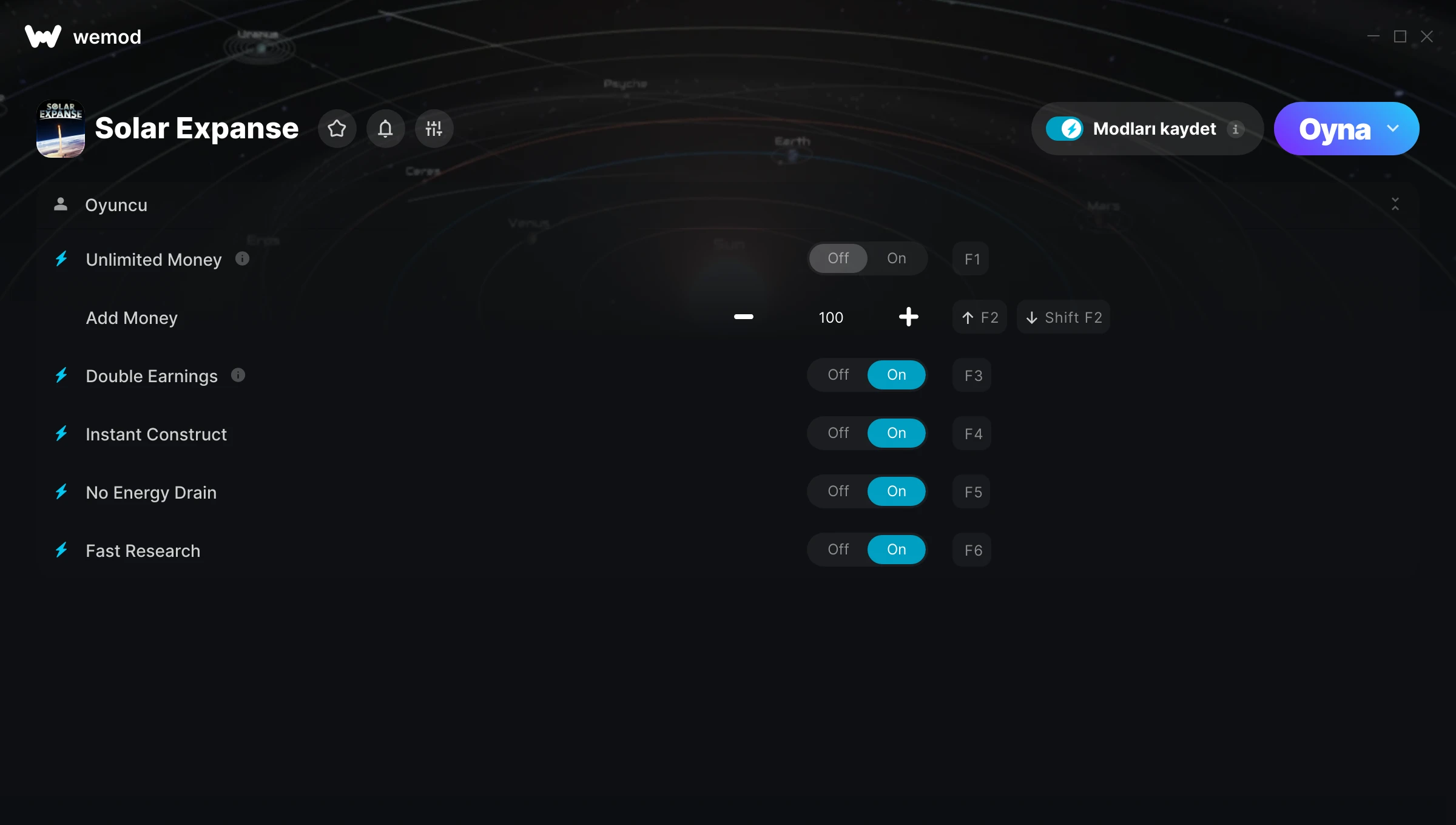 85MB Windows ...veya uygulamayı indirmek için bizi bilgisayarından ziyaret et Unlimited Money Edinin, Add Money & 4 diğer mod for Solar Expanse with WeMod