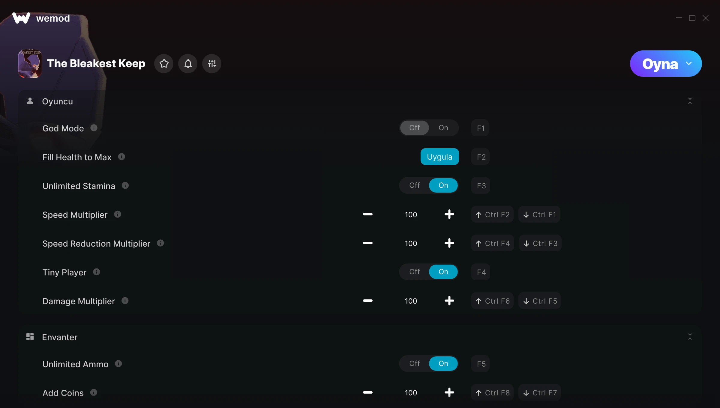 85MB Windows ...veya uygulamayı indirmek için bizi bilgisayarından ziyaret et Tanrı Modu Edinin, Sağlığı Maksimuma Doldur & 16 diğer mod for The Bleakest Keep with WeMod