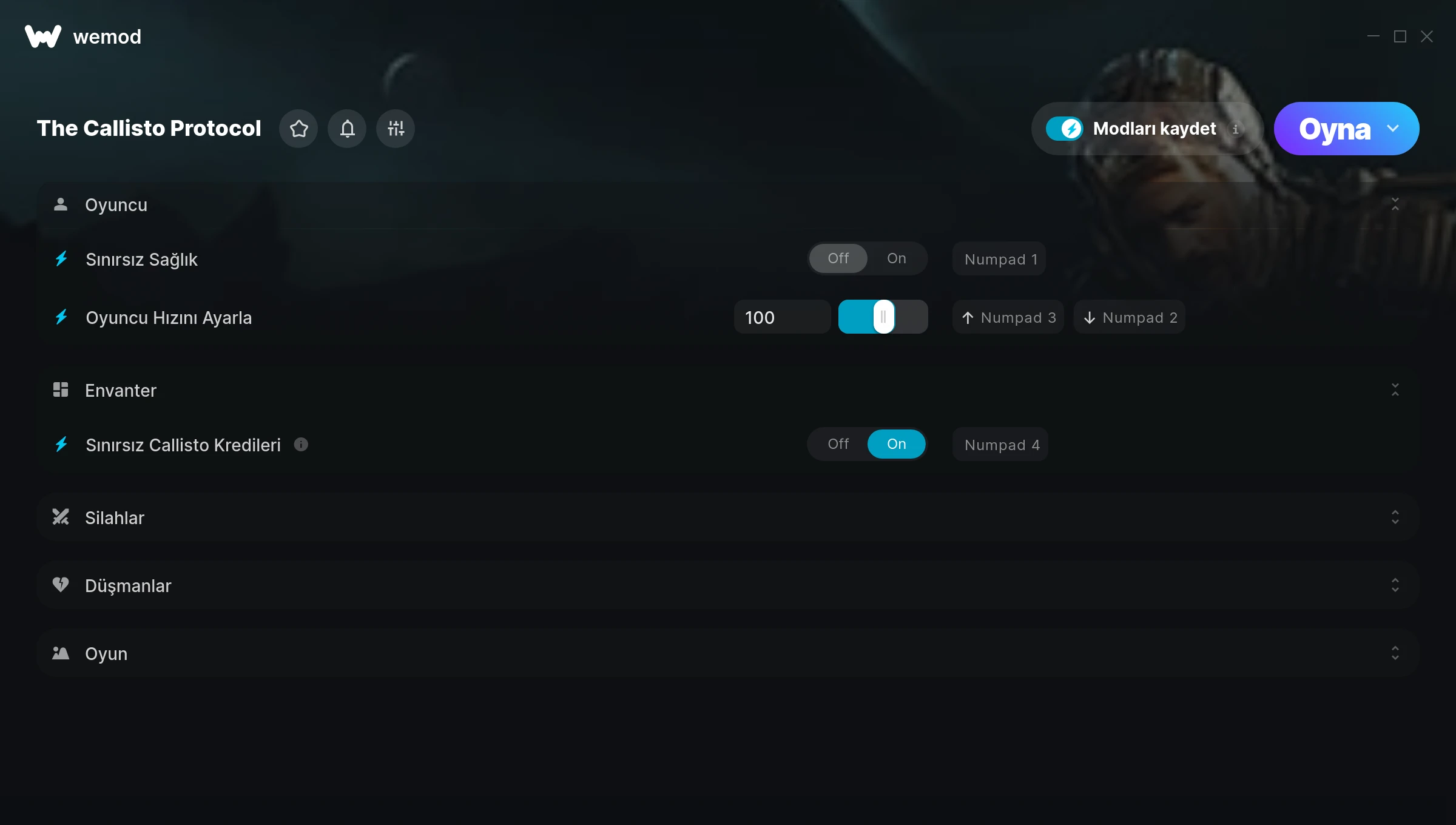 im so happy these mods exist. i use them to play the Callisto Protocol which as many know can be a tedious game and at many times hard to enjoy. because of the mods i can now enjoy the game the way i want. i was incredibly hyped when i first heard about this game only to be severely disappointed. Now im having fun enjoying the story more rather than constantly dying and getting frustrated. thank you so much WeMod for making all this. i thought it would be impossible to ever enjoy this game and now i have the opportunity to have fun.