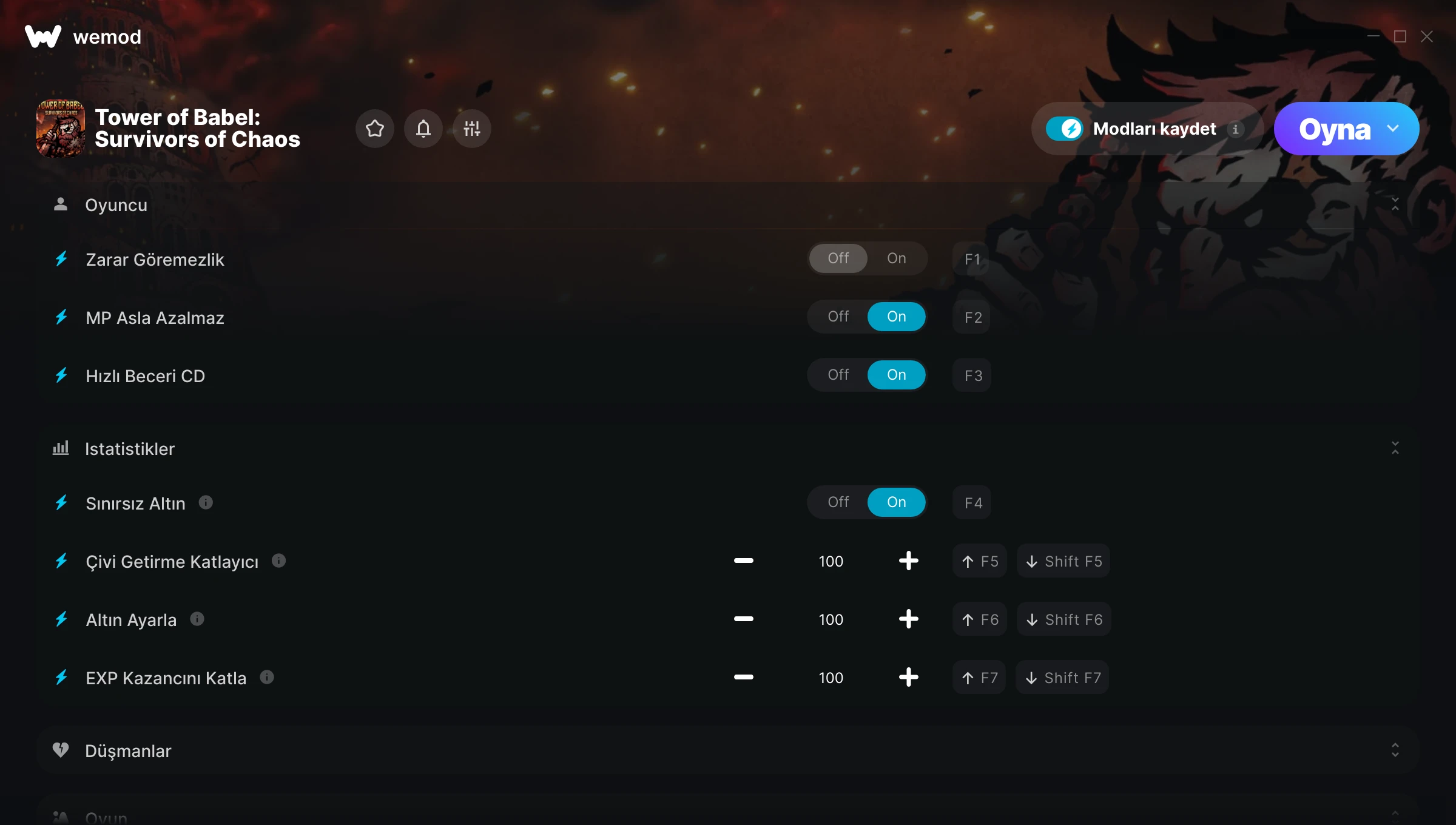 Daha Fazla Bilgi EdininDünya çapındaki milyonlarca oyuncudan oluşan topluluğumuz sayesinde WeMod daima güvenli ve daima ücretsizdir. WeMod Pro aboneleri tarafından desteklenmekteyiz. Trustpilot sitesindeki bizimle ilgili değerlendirmelere bir göz atın.