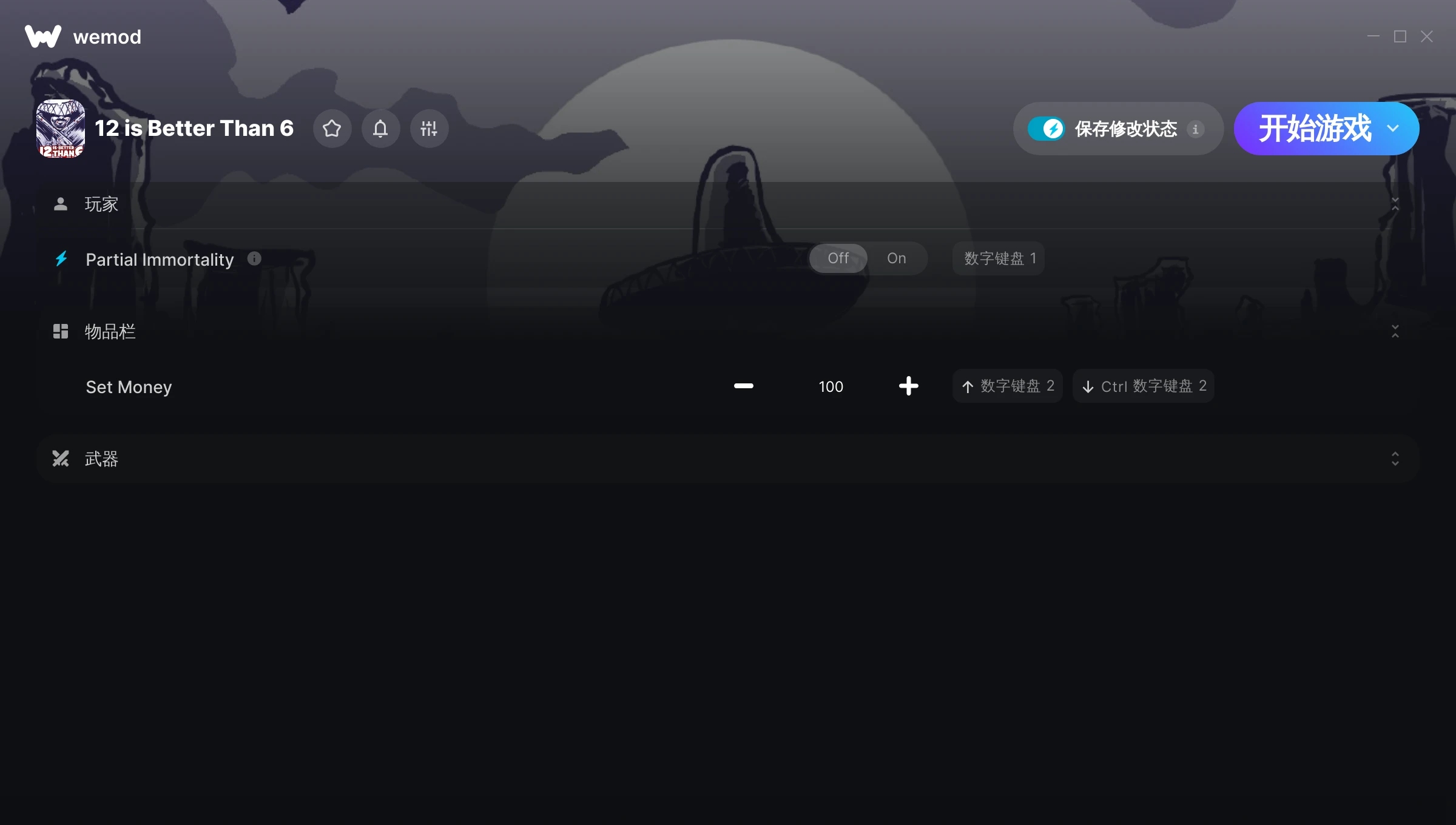 如何在 12 is Better Than 6 中使用修改器?WeMod 会安全地扫描并显示你的 PC 上已安装的所有游戏。只需从列表中选择一款游戏并点击“开始游戏”,即可快速启动游戏。当游戏完成加载并进入游戏画面后,你就可以开启各种修改了!这些修改适用于我的游戏版本吗?WeMod 还能使用先进技术自动检测你的游戏版本,并告知你该游戏是否支持修改。如果暂无修改,你可以选择直接进入游戏或提交制作申请!