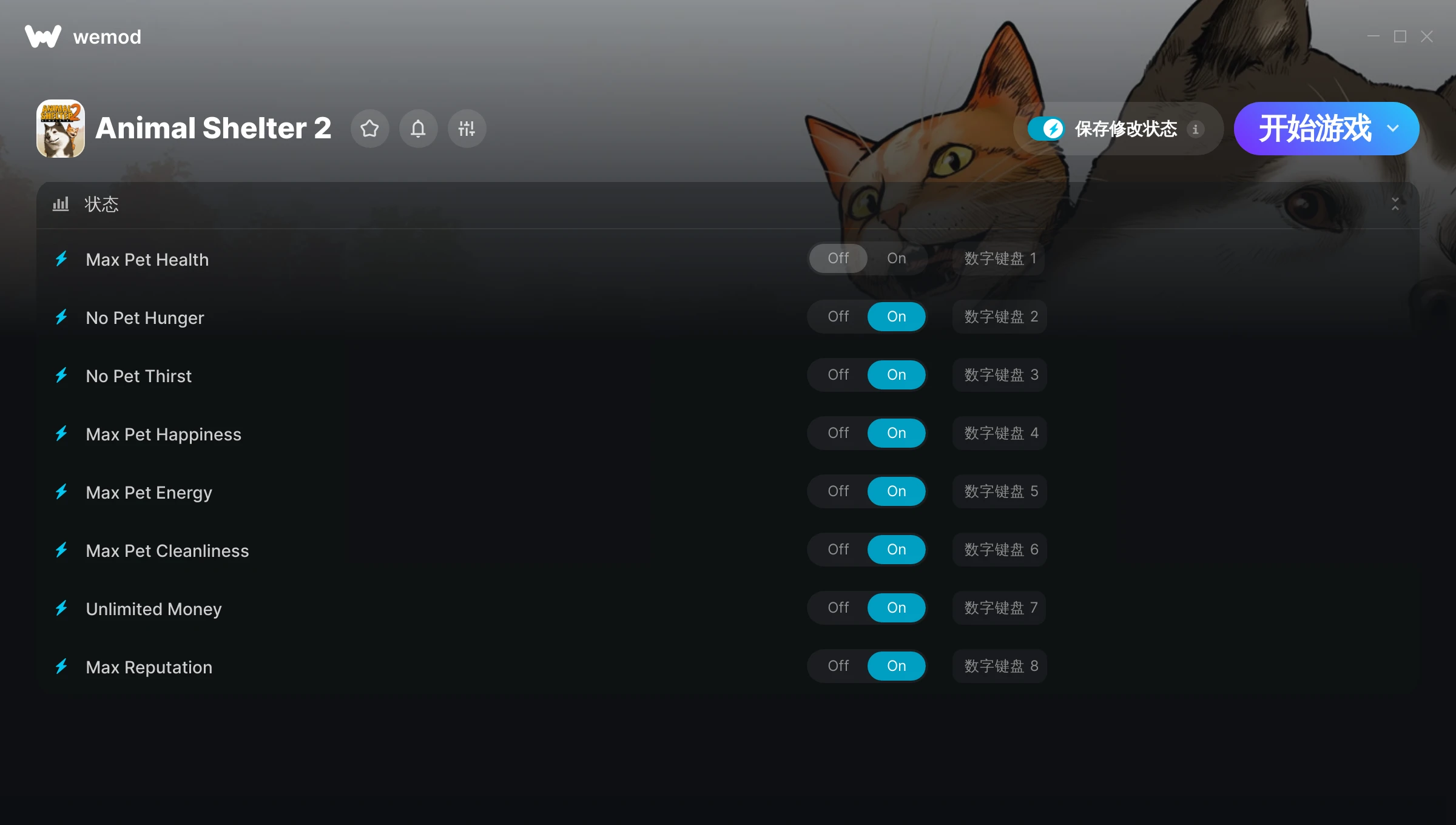 85MB Windows ...或者在 PC 上访问我们的官网并下载桌面应用 下载最大宠物生命值, 无宠物饥饿 & 其他 6 项修改 for Animal Shelter 2 with WeMod