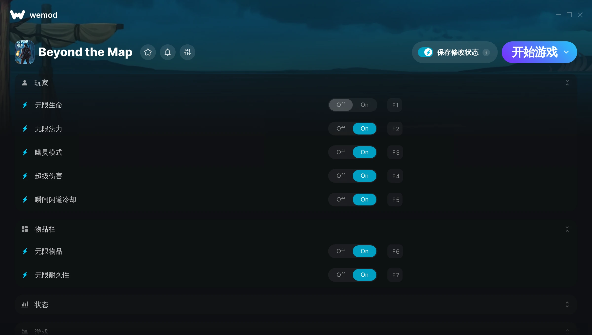 如何在 Beyond the Map 中使用修改器?WeMod 会安全地扫描并显示你的 PC 上已安装的所有游戏。只需从列表中选择一款游戏并点击“开始游戏”,即可快速启动游戏。当游戏完成加载并进入游戏画面后,你就可以开启各种修改了!这些修改适用于我的游戏版本吗?WeMod 还能使用先进技术自动检测你的游戏版本,并告知你该游戏是否支持修改。如果暂无修改,你可以选择直接进入游戏或提交制作申请!