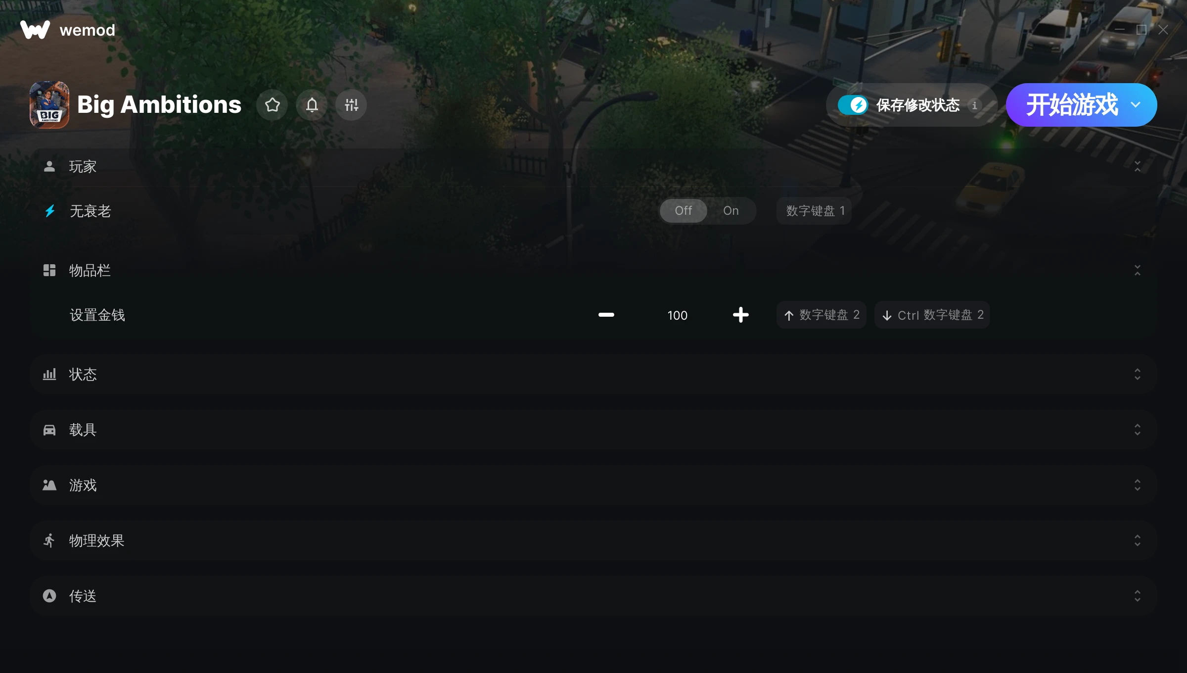 I found out about wemod after downloading Big Ambitions because the game has a feature that I don't like - constant car damage by other cars. It doesn't seem fair to charge the player for an accident they did not cause. And so, I decided to try wemod and it worked beautifully!