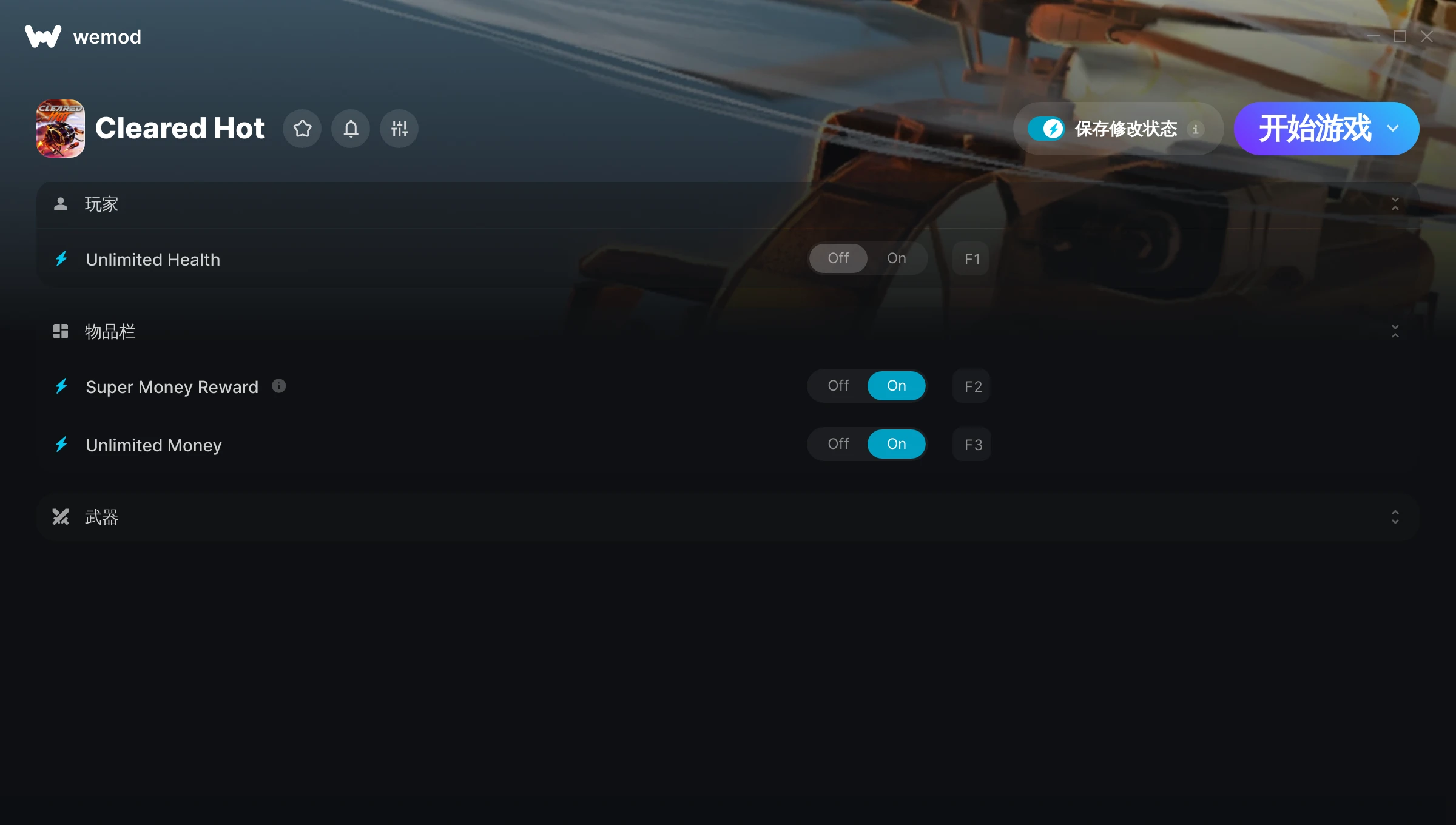 如何在 Cleared Hot 中使用修改器?WeMod 会安全地扫描并显示你的 PC 上已安装的所有游戏。只需从列表中选择一款游戏并点击“开始游戏”,即可快速启动游戏。当游戏完成加载并进入游戏画面后,你就可以开启各种修改了!这些修改适用于我的游戏版本吗?WeMod 还能使用先进技术自动检测你的游戏版本,并告知你该游戏是否支持修改。如果暂无修改,你可以选择直接进入游戏或提交制作申请!