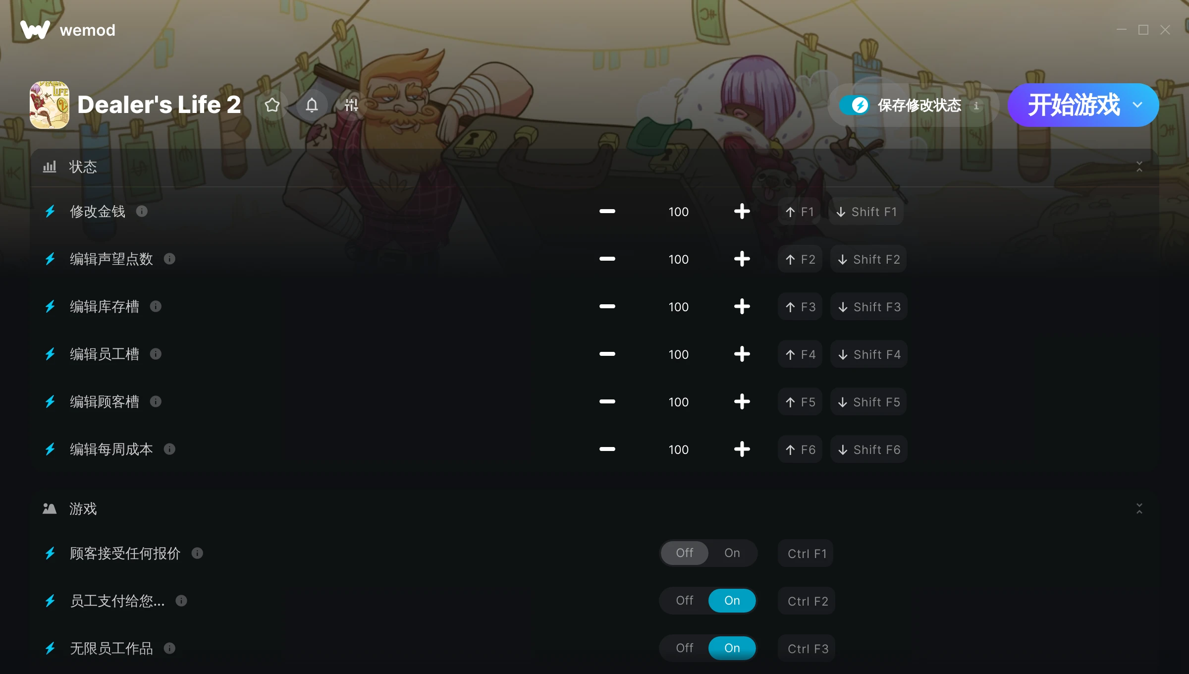 如何在 Dealer's Life 2 中使用修改器?WeMod 会安全地扫描并显示你的 PC 上已安装的所有游戏。只需从列表中选择一款游戏并点击“开始游戏”,即可快速启动游戏。当游戏完成加载并进入游戏画面后,你就可以开启各种修改了!这些修改适用于我的游戏版本吗?WeMod 还能使用先进技术自动检测你的游戏版本,并告知你该游戏是否支持修改。如果暂无修改,你可以选择直接进入游戏或提交制作申请!