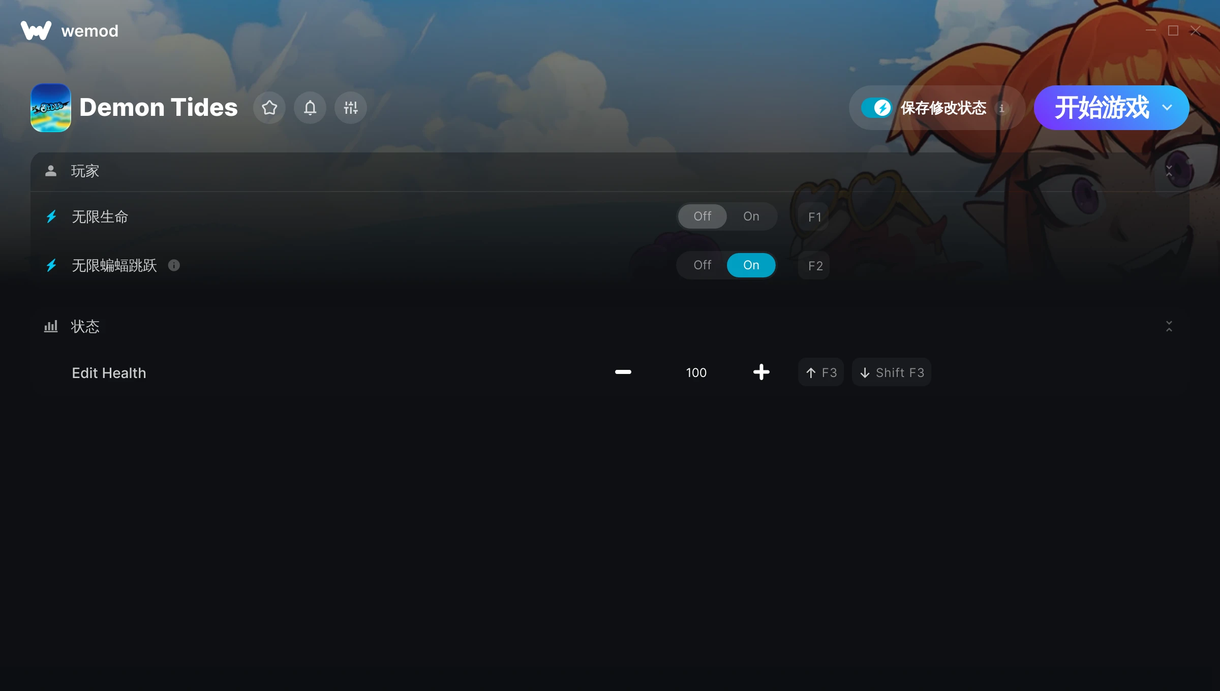 85MB Windows ...或者在 PC 上访问我们的官网并下载桌面应用 下载无限生命, 无限蝙蝠跳跃 & 其他 1 项修改 for Demon Tides with WeMod
