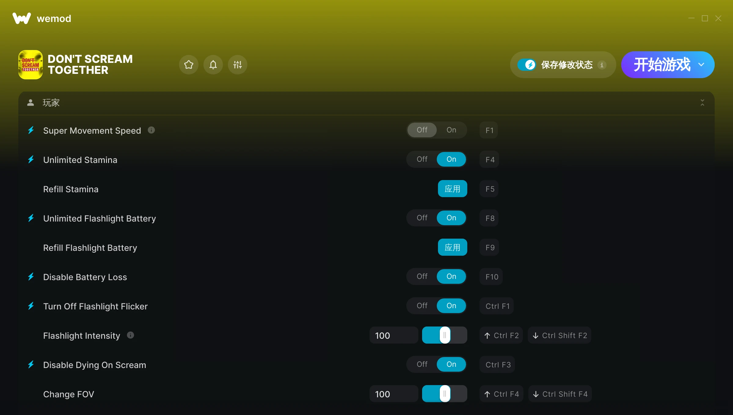 如何在 DON'T SCREAM TOGETHER 中使用修改器?WeMod 会安全地扫描并显示你的 PC 上已安装的所有游戏。只需从列表中选择一款游戏并点击“开始游戏”,即可快速启动游戏。当游戏完成加载并进入游戏画面后,你就可以开启各种修改了!这些修改适用于我的游戏版本吗?WeMod 还能使用先进技术自动检测你的游戏版本,并告知你该游戏是否支持修改。如果暂无修改,你可以选择直接进入游戏或提交制作申请!