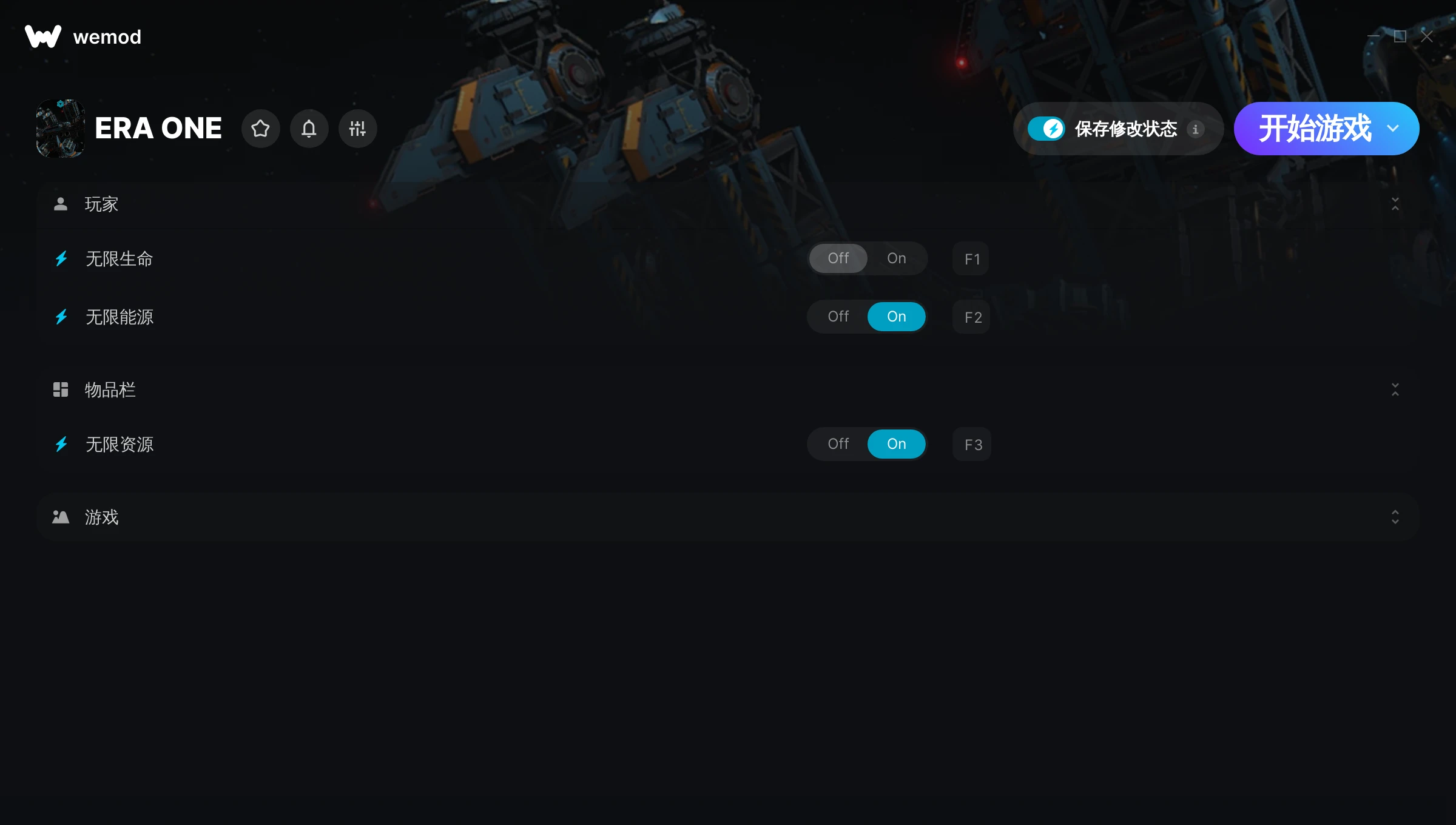 如何在 ERA ONE 中使用修改器?WeMod 会安全地扫描并显示你的 PC 上已安装的所有游戏。只需从列表中选择一款游戏并点击“开始游戏”,即可快速启动游戏。当游戏完成加载并进入游戏画面后,你就可以开启各种修改了!这些修改适用于我的游戏版本吗?WeMod 还能使用先进技术自动检测你的游戏版本,并告知你该游戏是否支持修改。如果暂无修改,你可以选择直接进入游戏或提交制作申请!