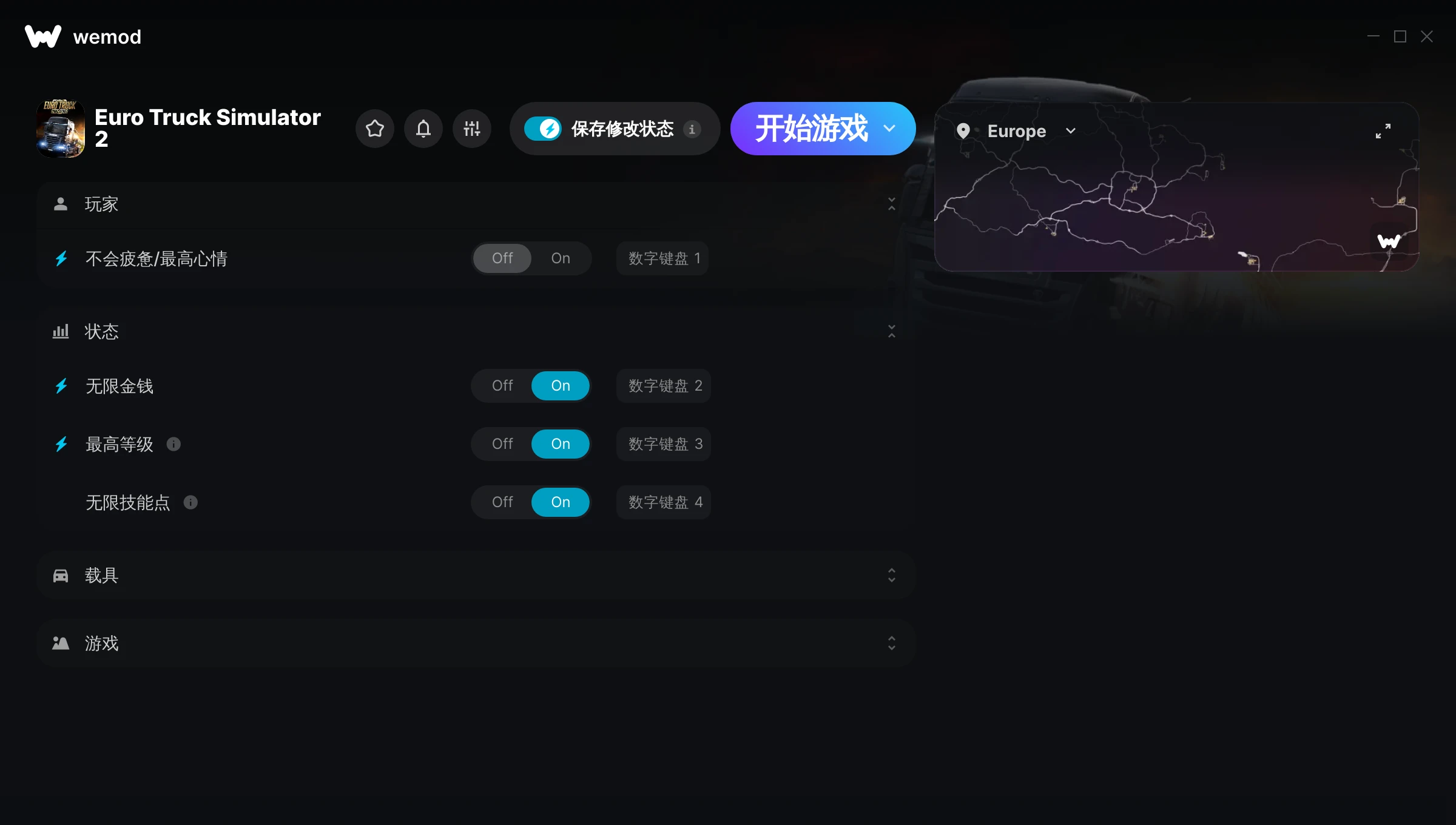 Euro Truck Simulator 2 的修改器和修改码