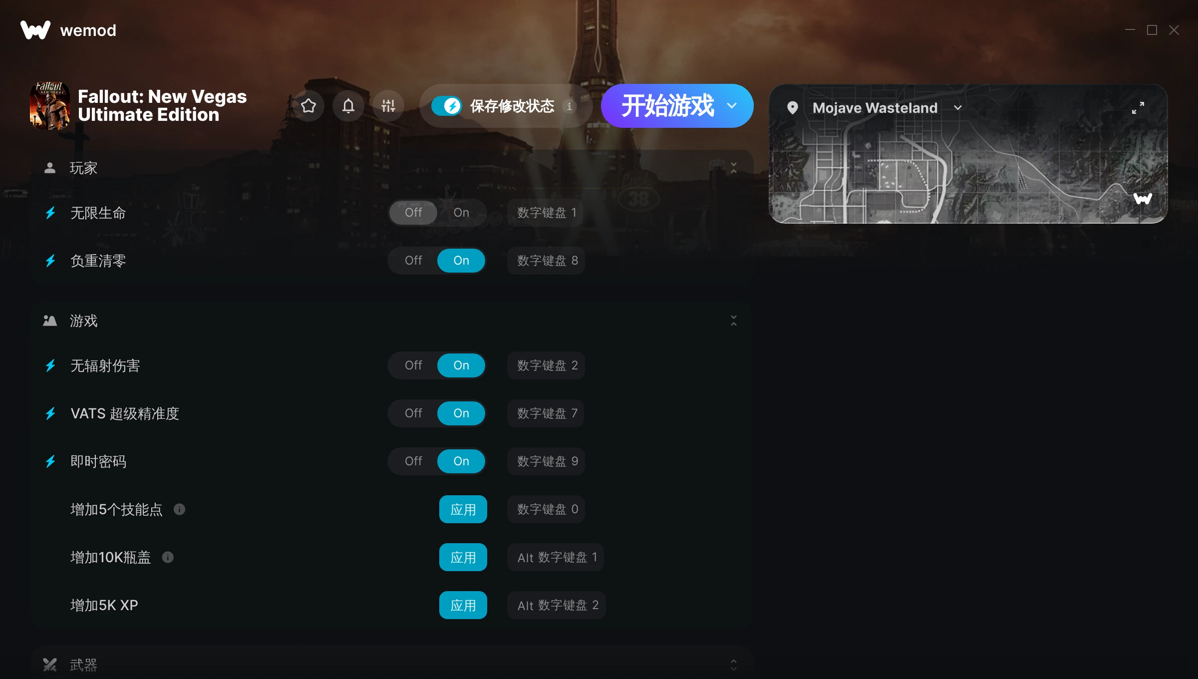 mods work, the game did crash, but that honestly is probably new vegas's fault not WeMod. Nice to have some more pocket change.