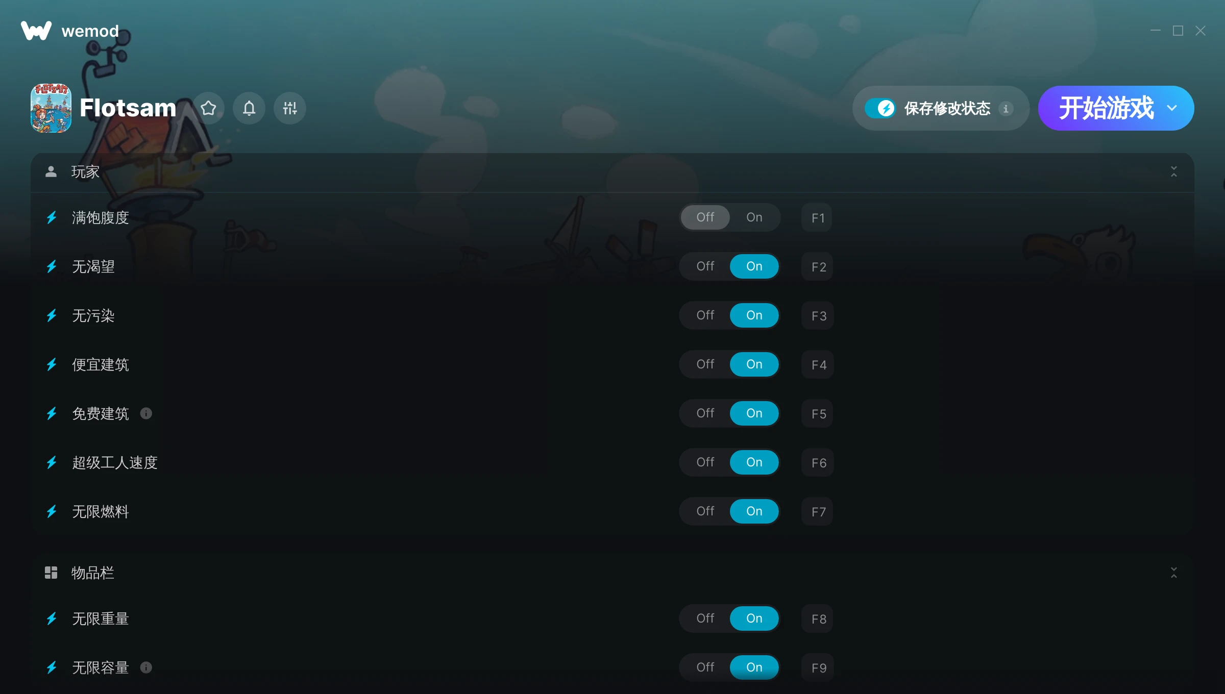 The level of water and food went down, despite my using Wemod. However the rest worked well enough.