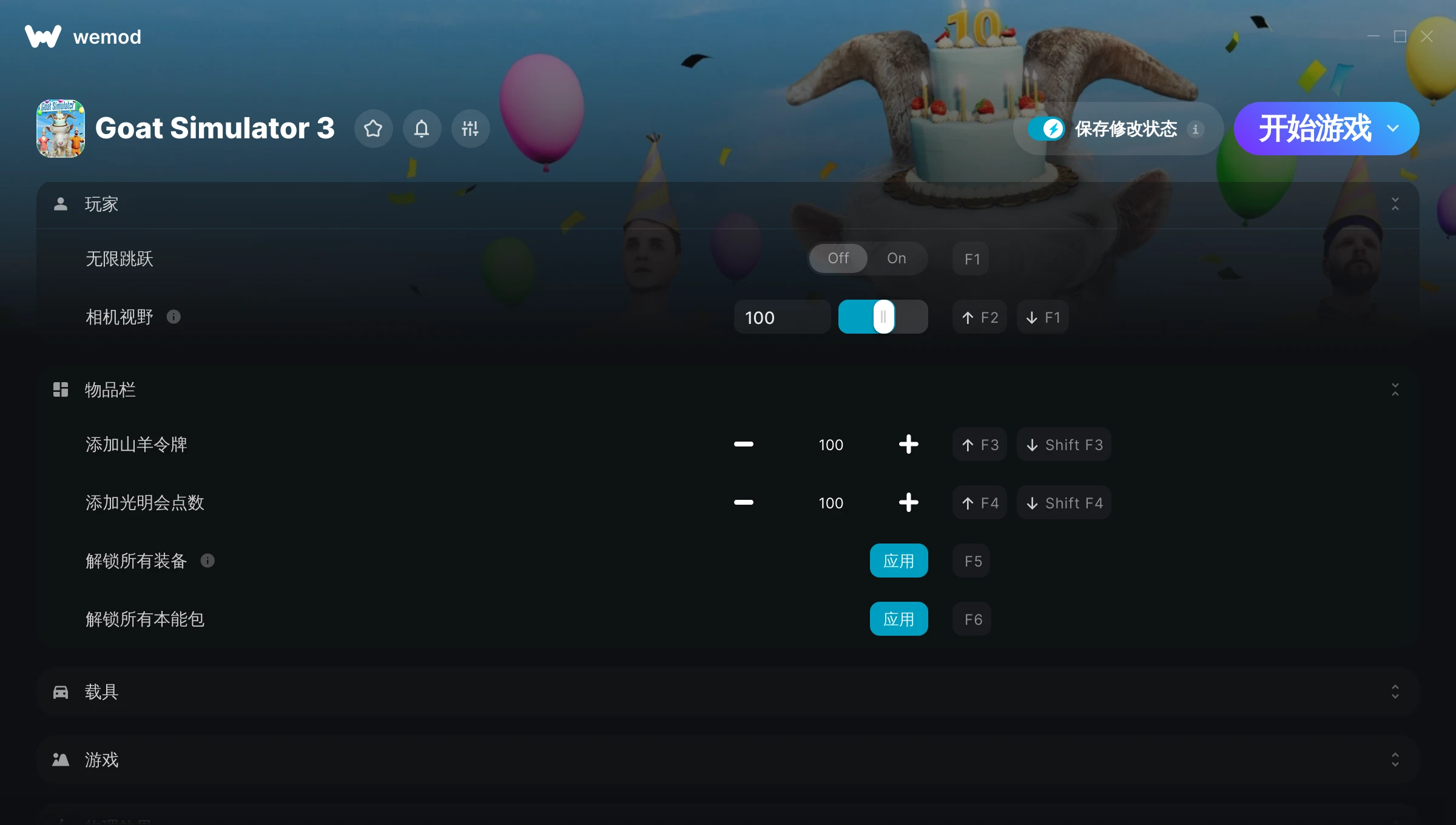 Hey developer, I have loved every thing and every second of playing Goat Simulator 3 with my friends, and then I was able to download this and have infinite coins and do all sorts of stuff, it made the game so much more fun and allowed for much more options of things to do and explore. I will be using Wemod on several of my other games because I enjoy it so much, from the bottom of my heart, thank you so much for this application.