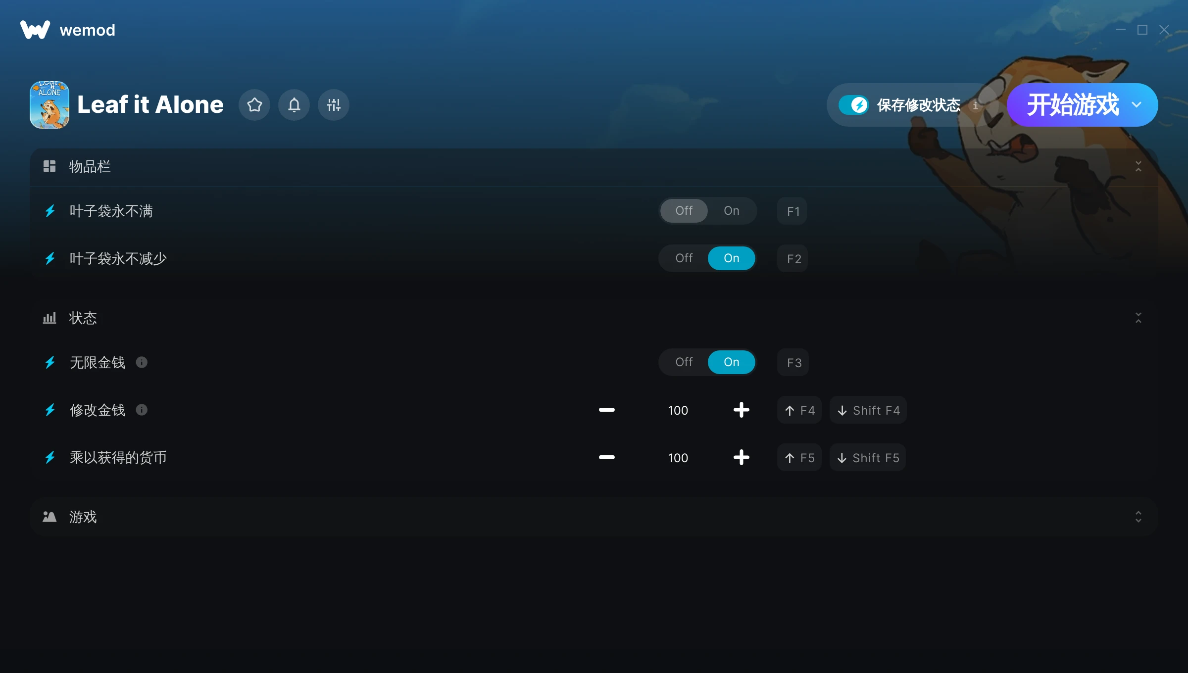 如何在 Leaf it Alone 中使用修改器?WeMod 会安全地扫描并显示你的 PC 上已安装的所有游戏。只需从列表中选择一款游戏并点击“开始游戏”,即可快速启动游戏。当游戏完成加载并进入游戏画面后,你就可以开启各种修改了!这些修改适用于我的游戏版本吗?WeMod 还能使用先进技术自动检测你的游戏版本,并告知你该游戏是否支持修改。如果暂无修改,你可以选择直接进入游戏或提交制作申请!