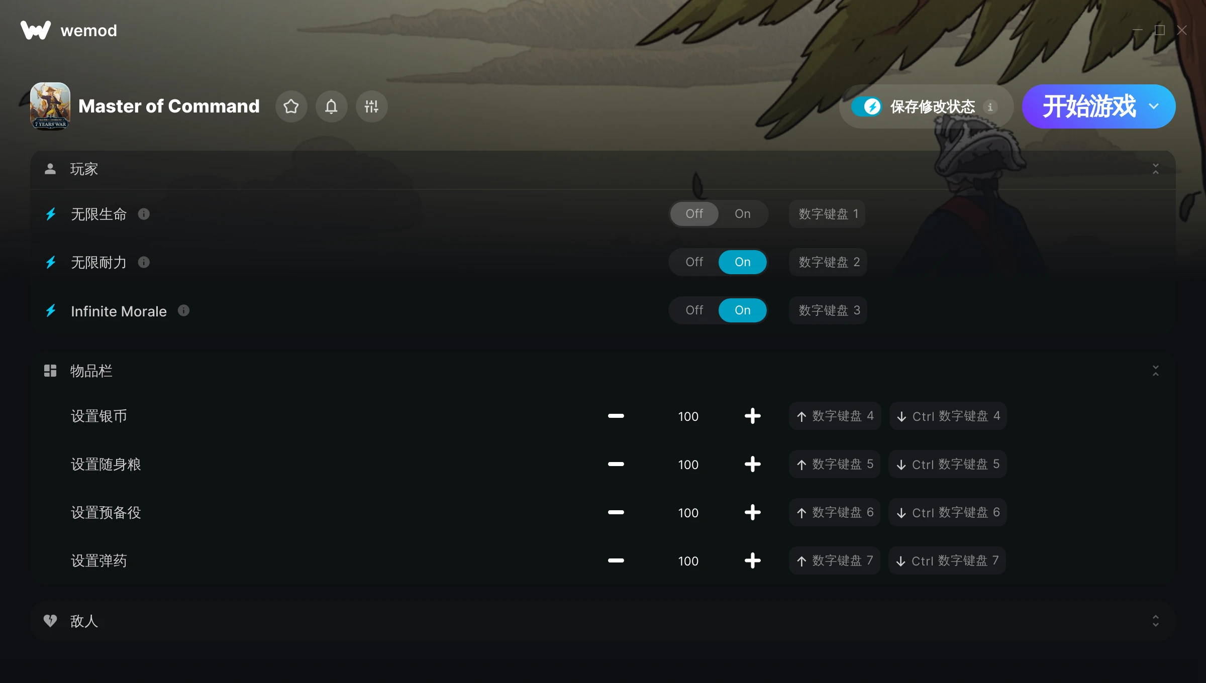 如何在 Master of Command 中使用修改器?WeMod 会安全地扫描并显示你的 PC 上已安装的所有游戏。只需从列表中选择一款游戏并点击“开始游戏”,即可快速启动游戏。当游戏完成加载并进入游戏画面后,你就可以开启各种修改了!这些修改适用于我的游戏版本吗?WeMod 还能使用先进技术自动检测你的游戏版本,并告知你该游戏是否支持修改。如果暂无修改,你可以选择直接进入游戏或提交制作申请!