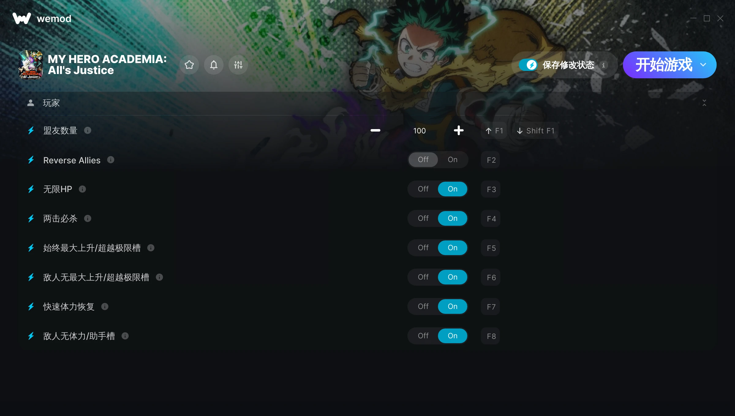 85MB Windows ...或者在 PC 上访问我们的官网并下载桌面应用 下载盟友数量, 反转盟友 & 其他 6 项修改 for MY HERO ACADEMIA: All's Justice with WeMod