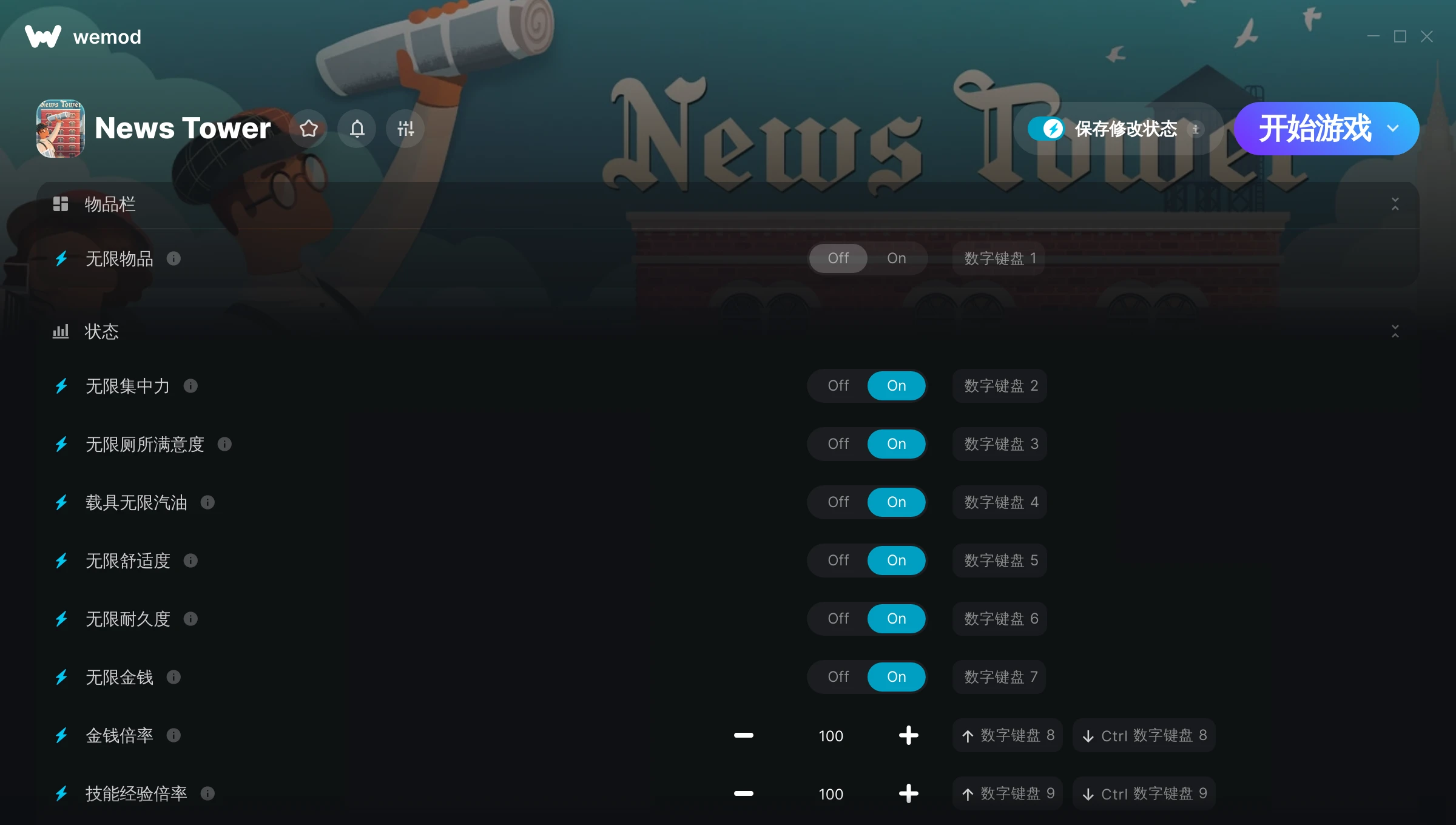 85MB Windows ...或者在 PC 上访问我们的官网并下载桌面应用 下载无限物品, 无限集中力 & 其他 15 项修改 for News Tower with WeMod