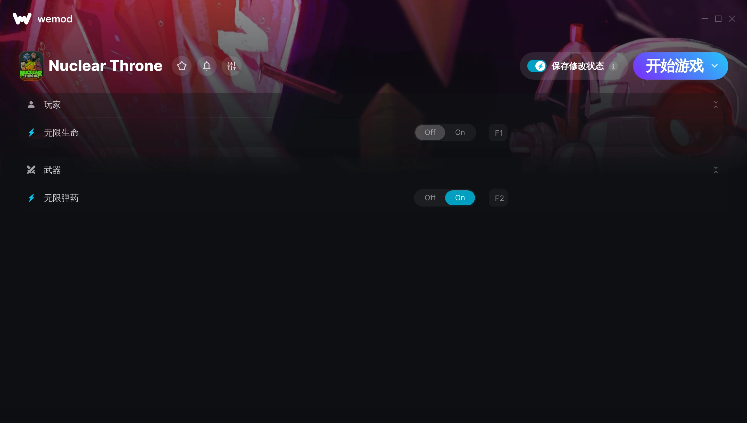 85MB Windows ...或者在 PC 上访问我们的官网并下载桌面应用 下载无限生命, 无限弹药 for Nuclear Throne with WeMod