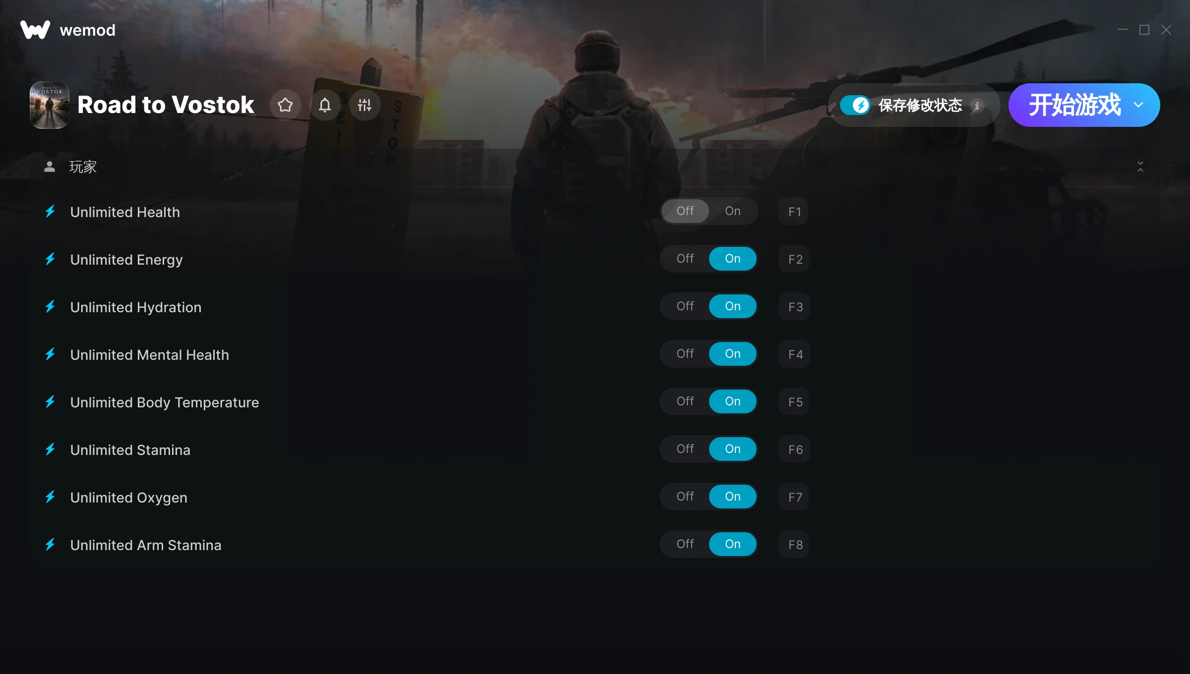 如何在 Road to Vostok 中使用修改器?WeMod 会安全地扫描并显示你的 PC 上已安装的所有游戏。只需从列表中选择一款游戏并点击“开始游戏”,即可快速启动游戏。当游戏完成加载并进入游戏画面后,你就可以开启各种修改了!这些修改适用于我的游戏版本吗?WeMod 还能使用先进技术自动检测你的游戏版本,并告知你该游戏是否支持修改。如果暂无修改,你可以选择直接进入游戏或提交制作申请!