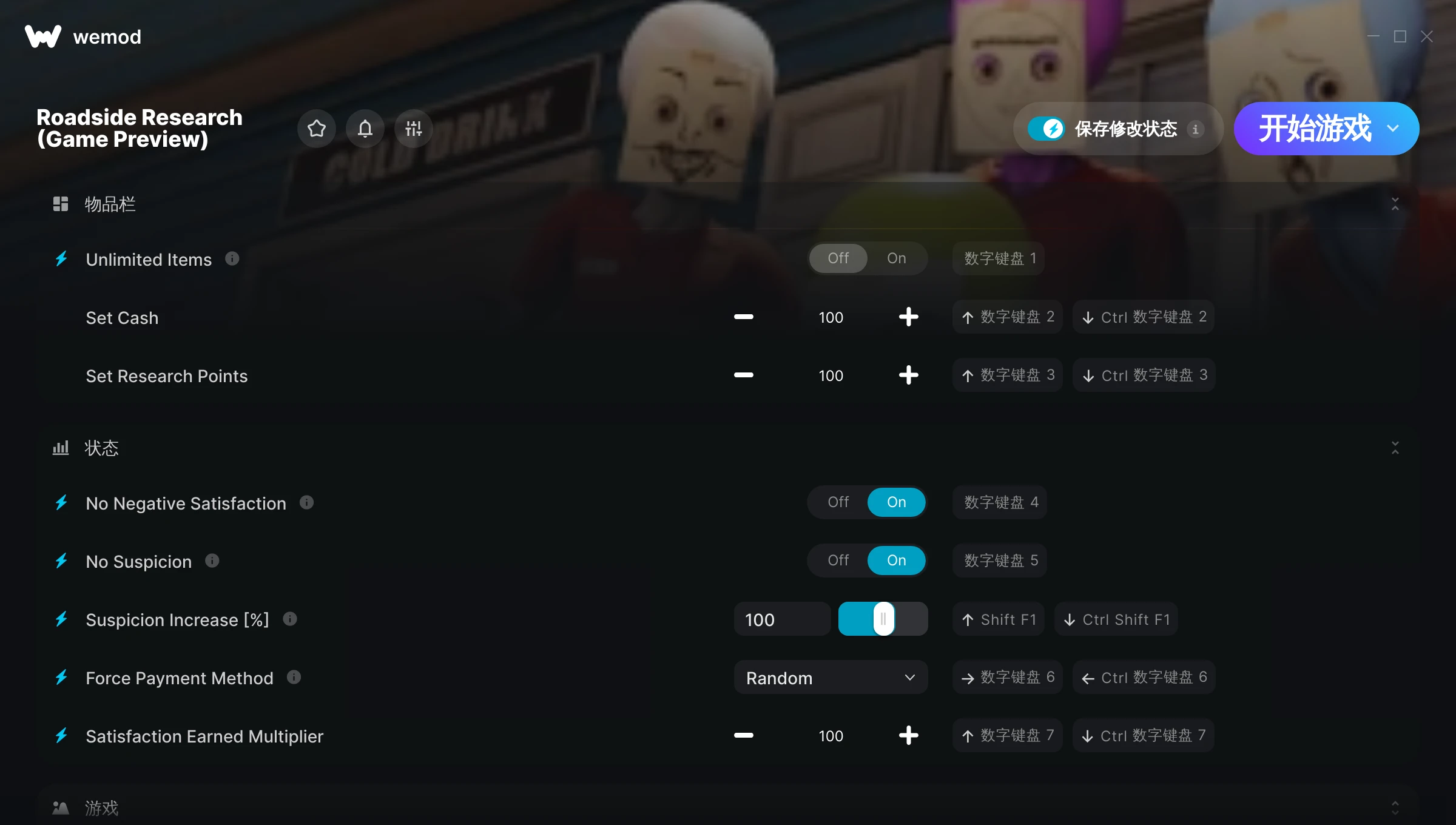 如何在 Roadside Research (Game Preview) 中使用修改器?WeMod 会安全地扫描并显示你的 PC 上已安装的所有游戏。只需从列表中选择一款游戏并点击“开始游戏”,即可快速启动游戏。当游戏完成加载并进入游戏画面后,你就可以开启各种修改了!这些修改适用于我的游戏版本吗?WeMod 还能使用先进技术自动检测你的游戏版本,并告知你该游戏是否支持修改。如果暂无修改,你可以选择直接进入游戏或提交制作申请!