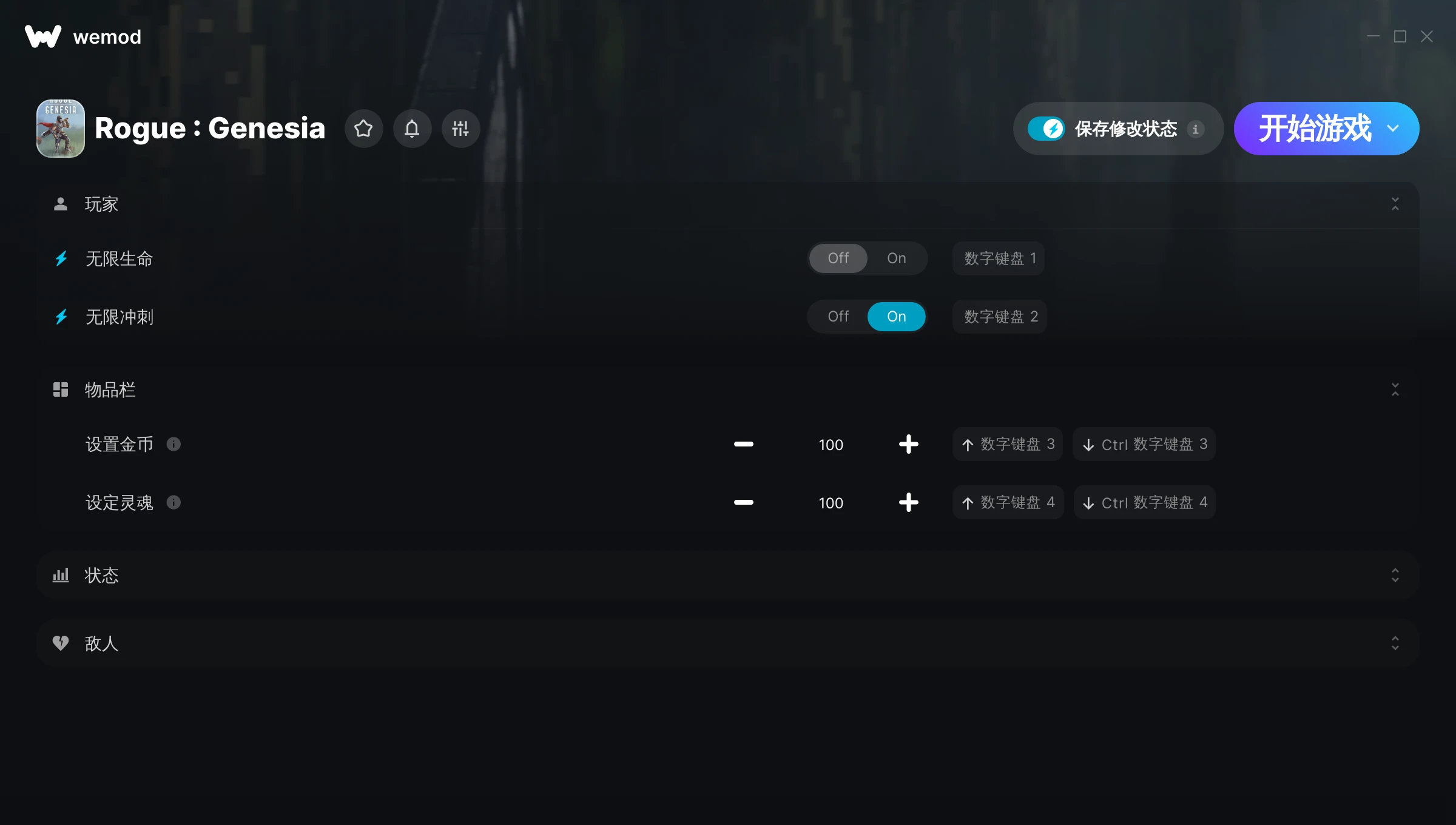 85MB Windows ...或者在 PC 上访问我们的官网并下载桌面应用 下载无限生命, 无限冲刺 & 其他 7 项修改 for Rogue : Genesia with WeMod