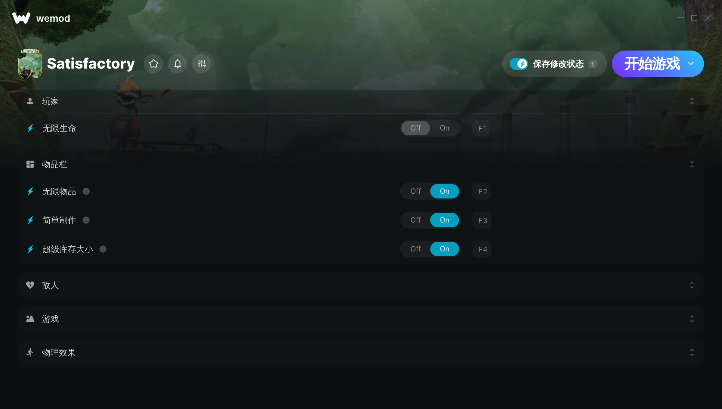 the cheats work very well, good work. thanks, i use the running and jumping a lot to cut time, but i like to do items and inventory legit, so not so much. also good to have F1 be a safety if i fall from a high place while building a sky bridge.