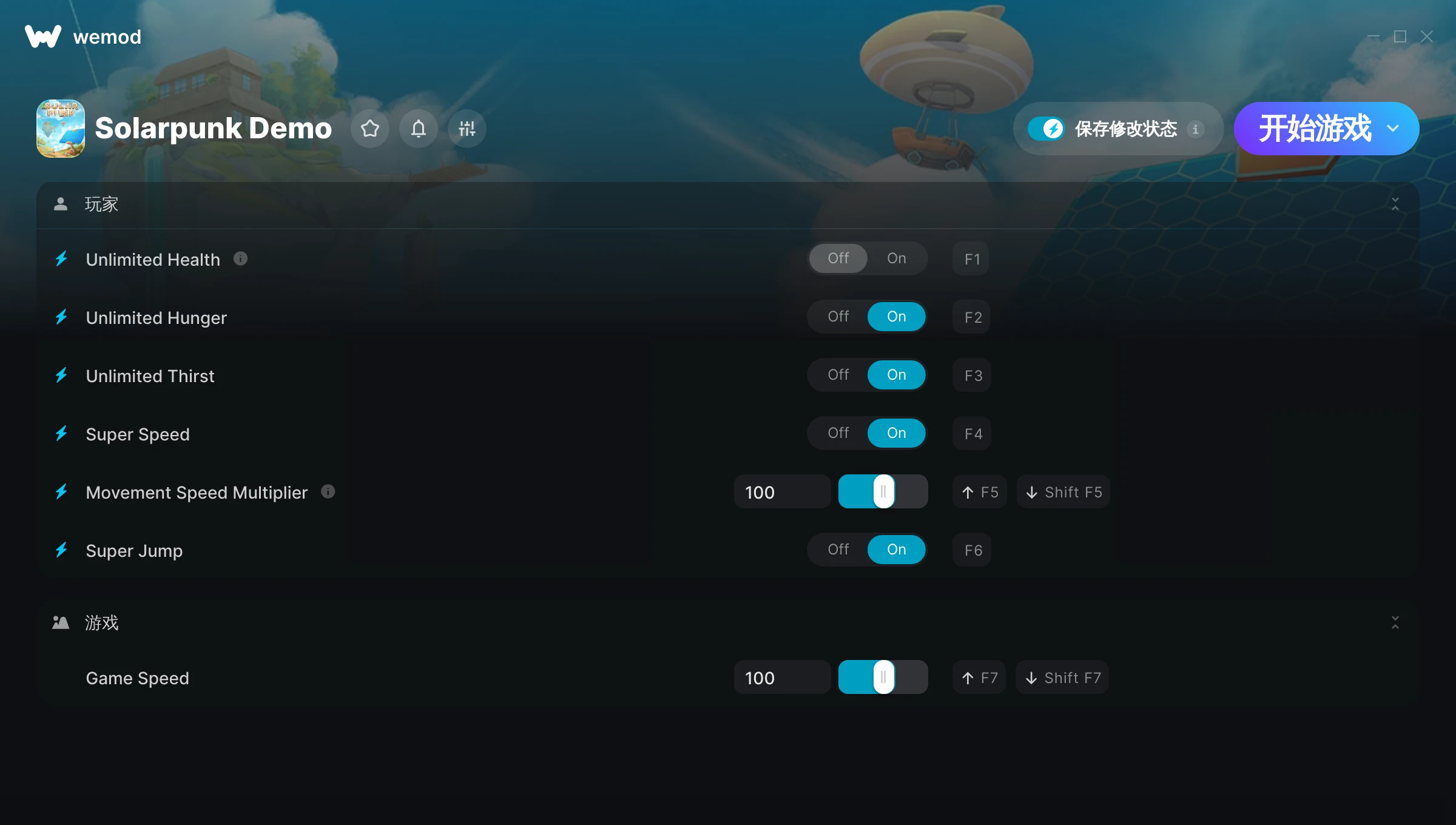 85MB Windows ...或者在 PC 上访问我们的官网并下载桌面应用 下载Unlimited Health, Unlimited Hunger & 其他 5 项修改 for Solarpunk Demo with WeMod