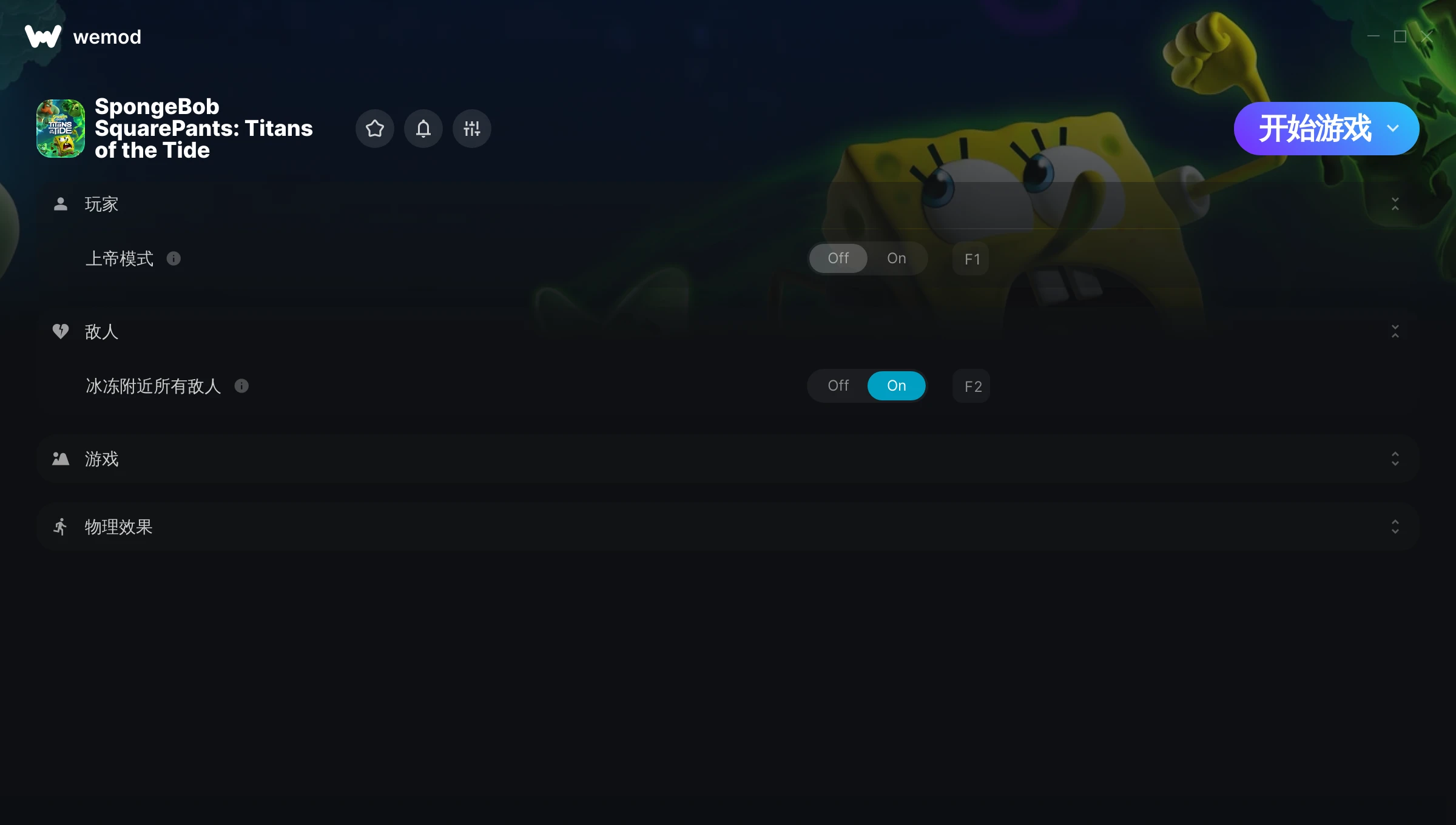 85MB Windows ...或者在 PC 上访问我们的官网并下载桌面应用 下载上帝模式, 冰冻附近所有敌人 & 其他 9 项修改 for SpongeBob SquarePants: Titans of the Tide with WeMod