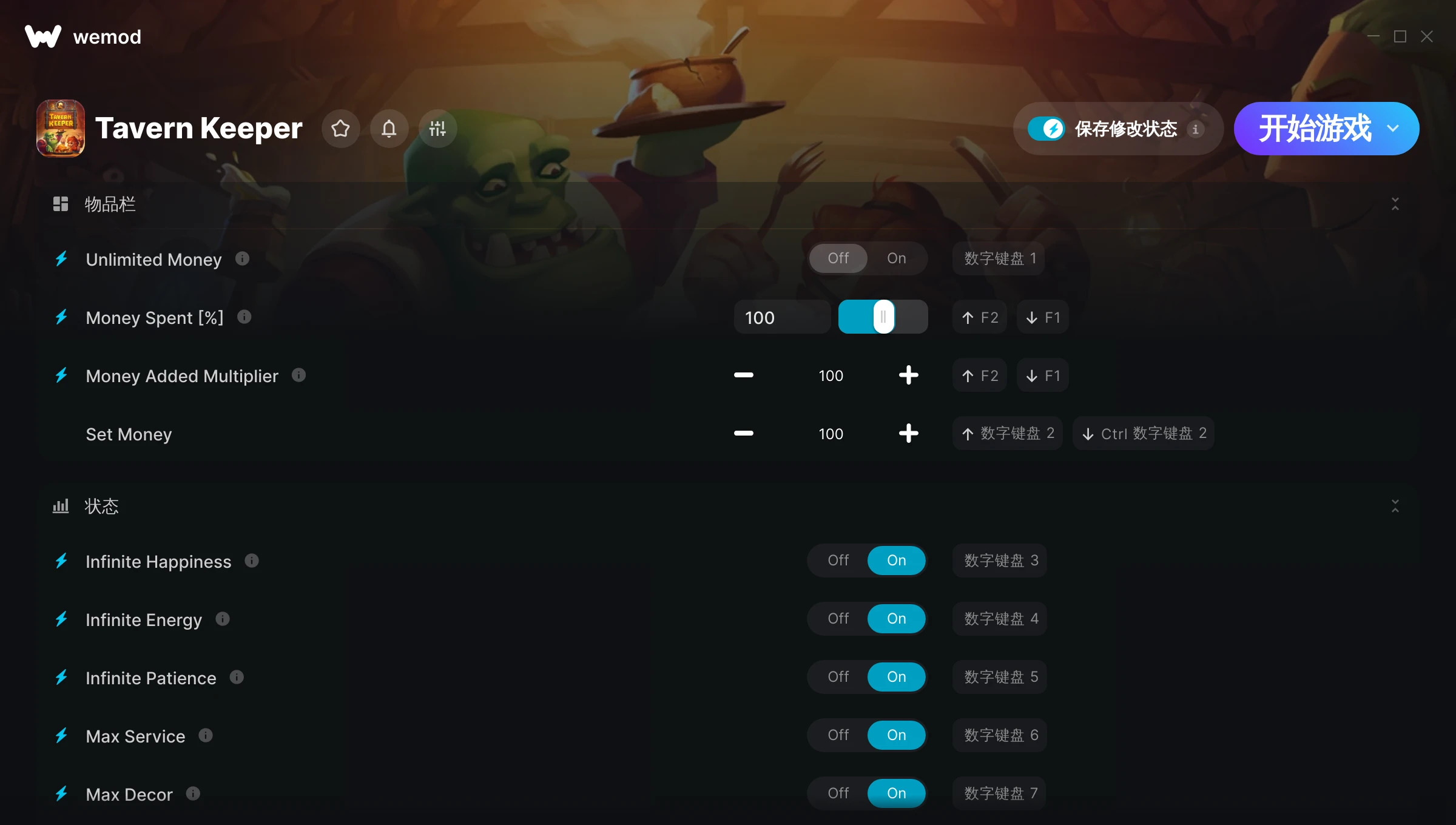 85MB Windows ...或者在 PC 上访问我们的官网并下载桌面应用 下载Unlimited Money, Money Spent [%] & 其他 18 项修改 for Tavern Keeper with WeMod